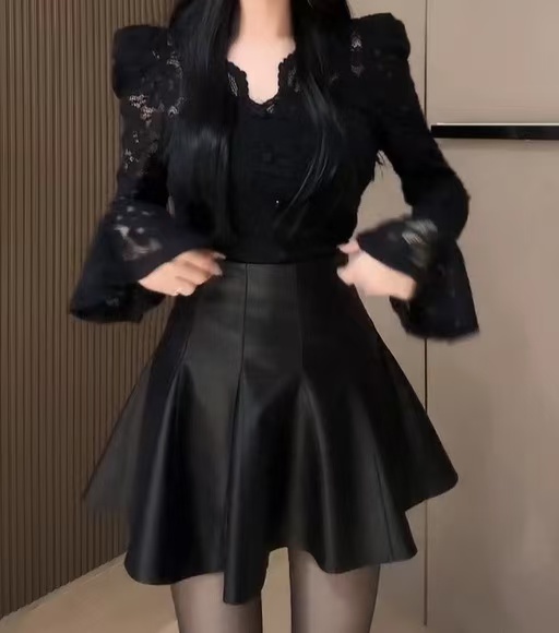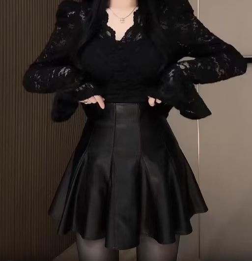 皮裙半身裙女秋冬时尚百搭气质短裙显瘦高腰包臀裙a字裙pu小皮裙 服裝批發女裝批發服飾貨源