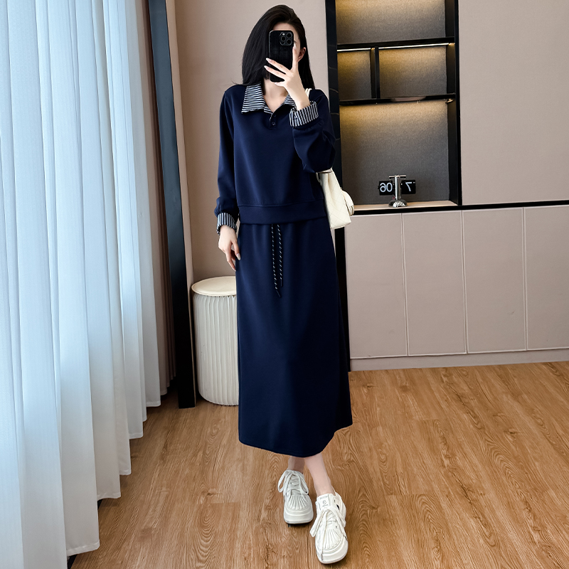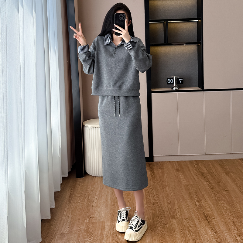韩系大码减龄休闲显瘦运动套装裙女秋冬宽松卫衣百搭两件套裙 服裝批發女裝批發服飾貨源