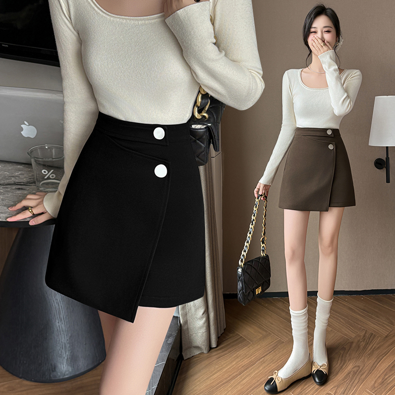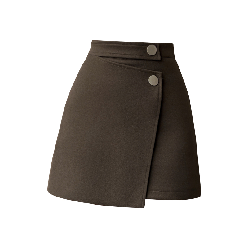 FA46590# 秋冬新款钉扣设计感不规则半身裙遮胯毛呢A字裙显瘦包臂裙子