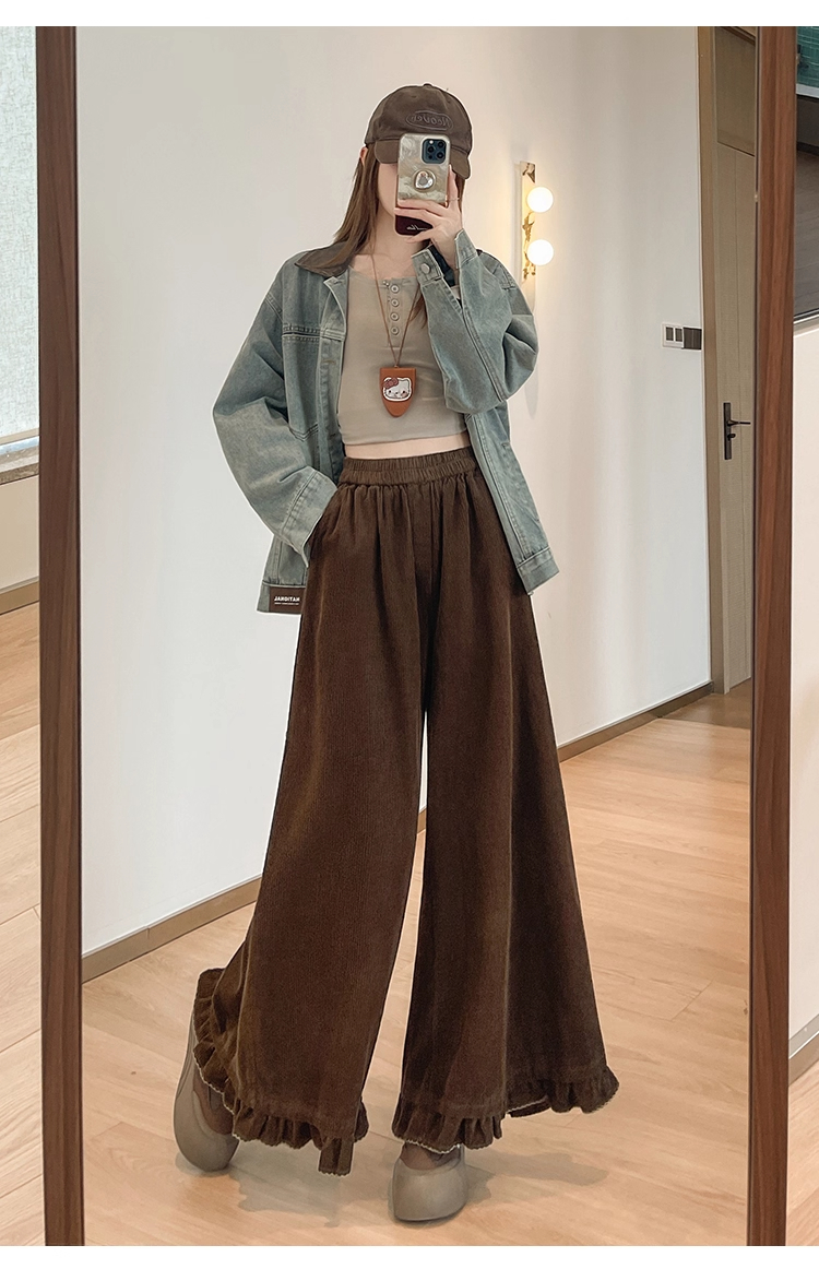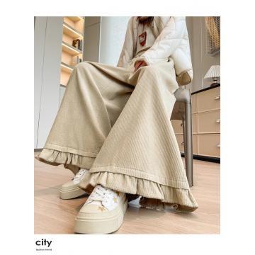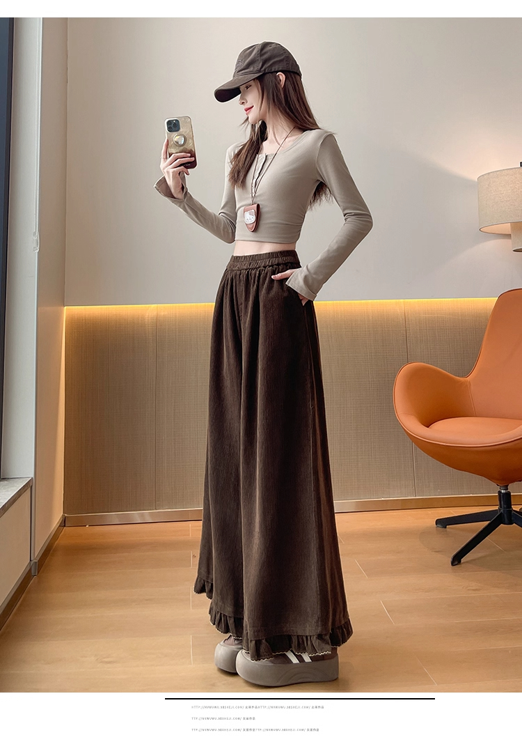 FA46653# 灯芯绒美拉德咖色松紧腰木耳边