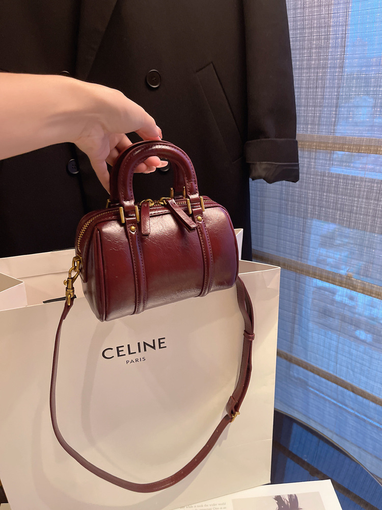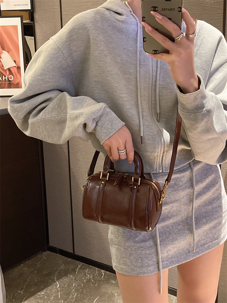 TJ2042# 流行小众精致手提波士顿包包女2025新款复古时尚单肩斜挎包