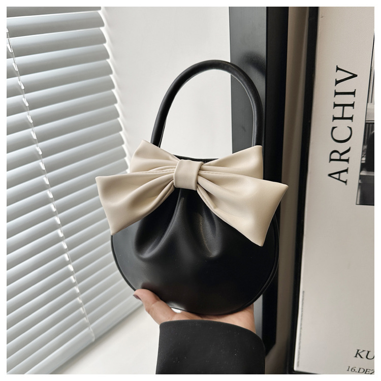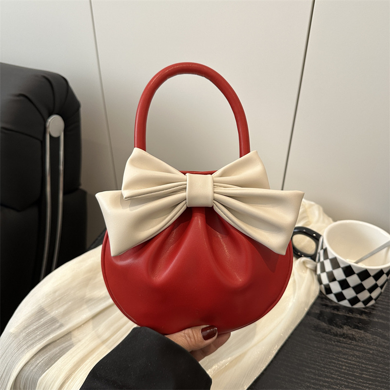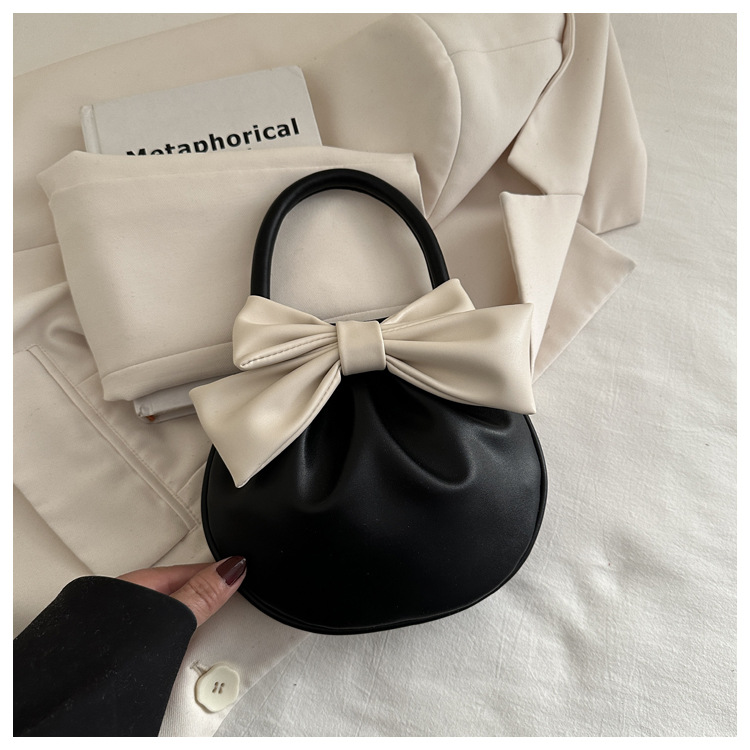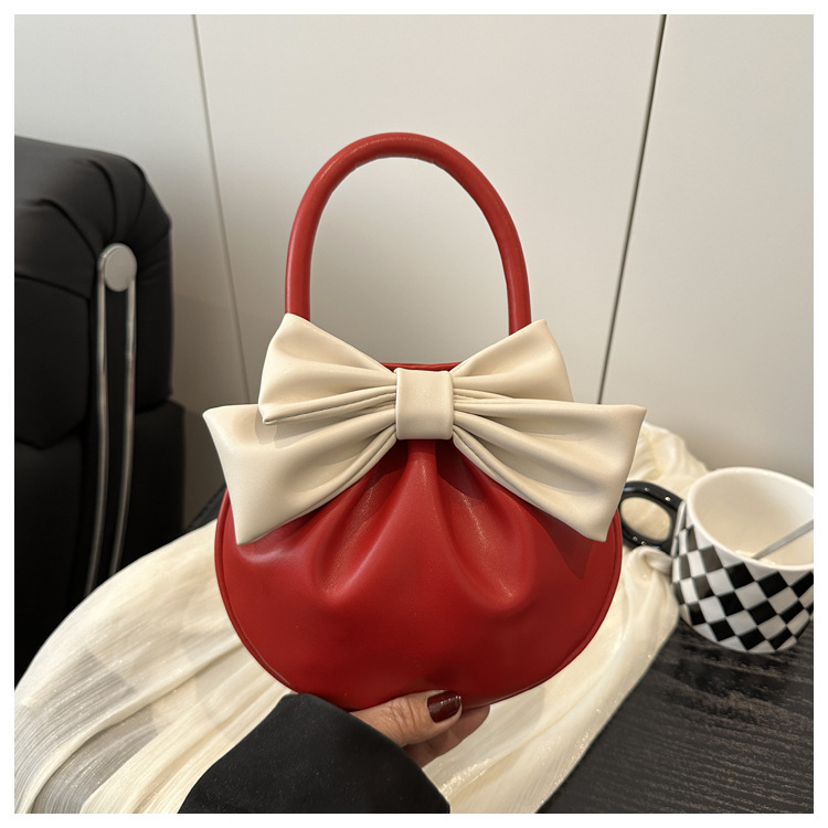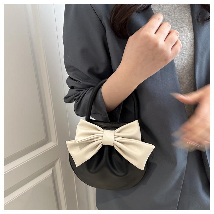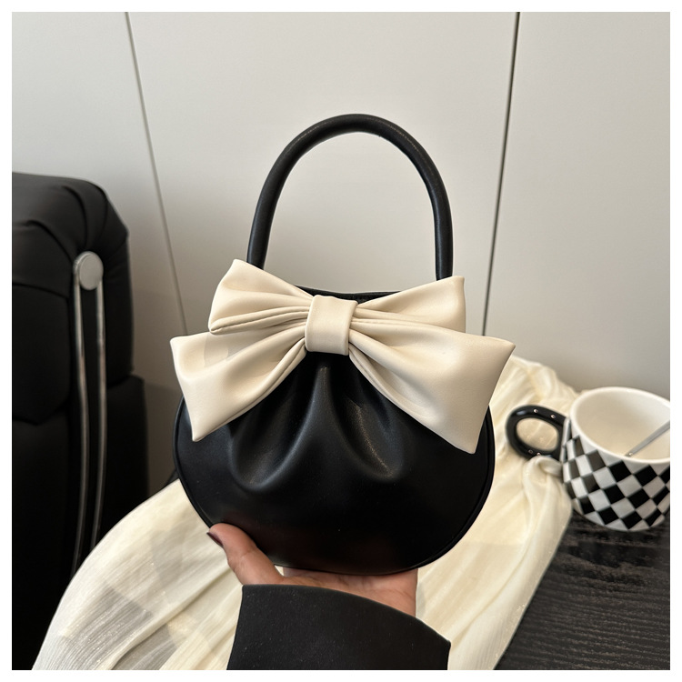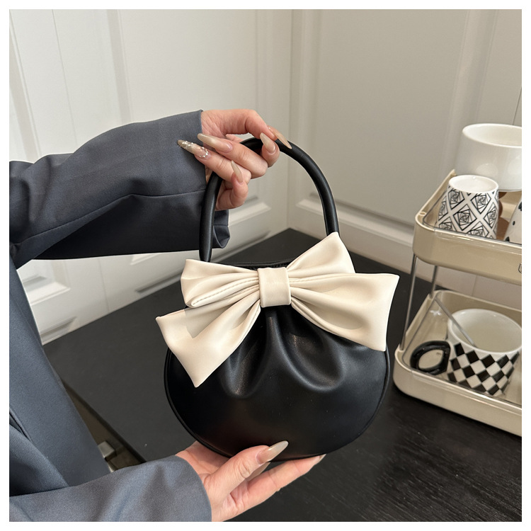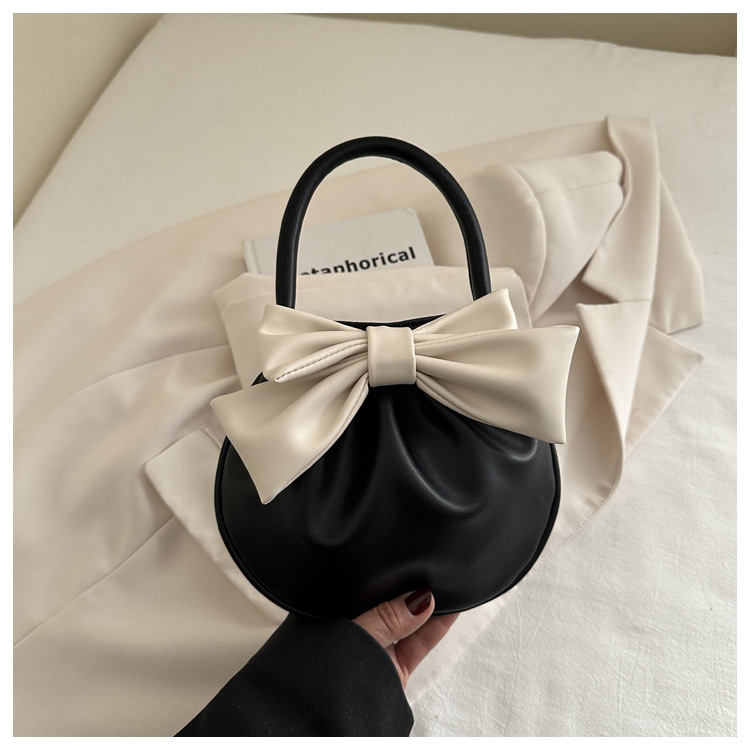 TJ2069# 小众设计蝴蝶结手提包2025新款高级感撞色小圆包时尚百搭高颜值女