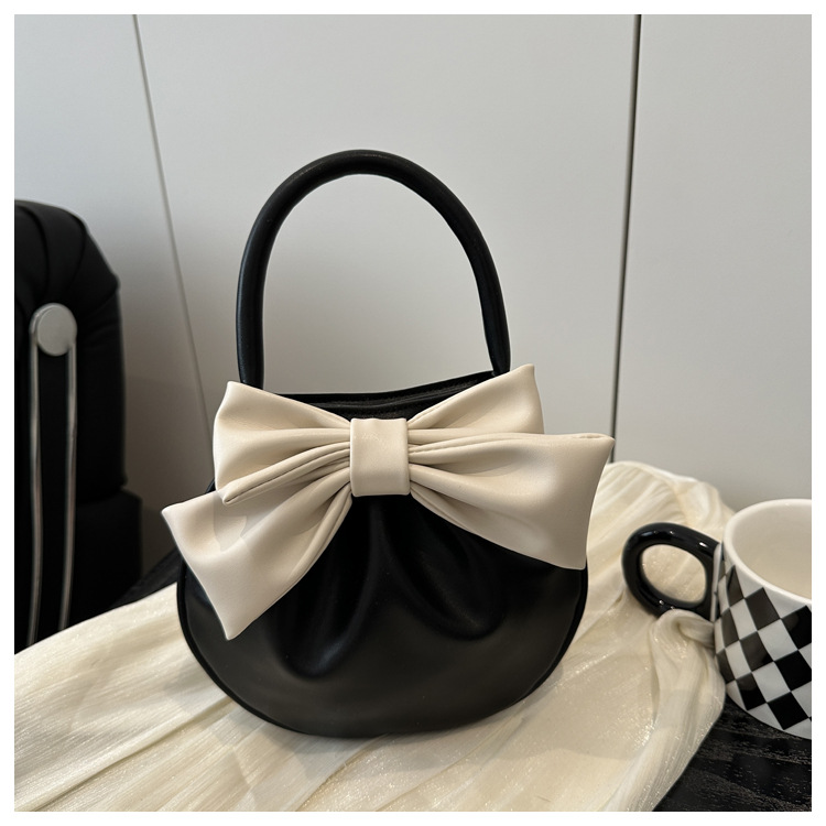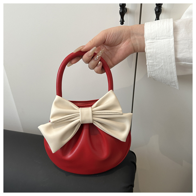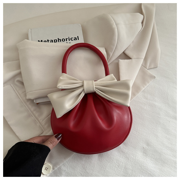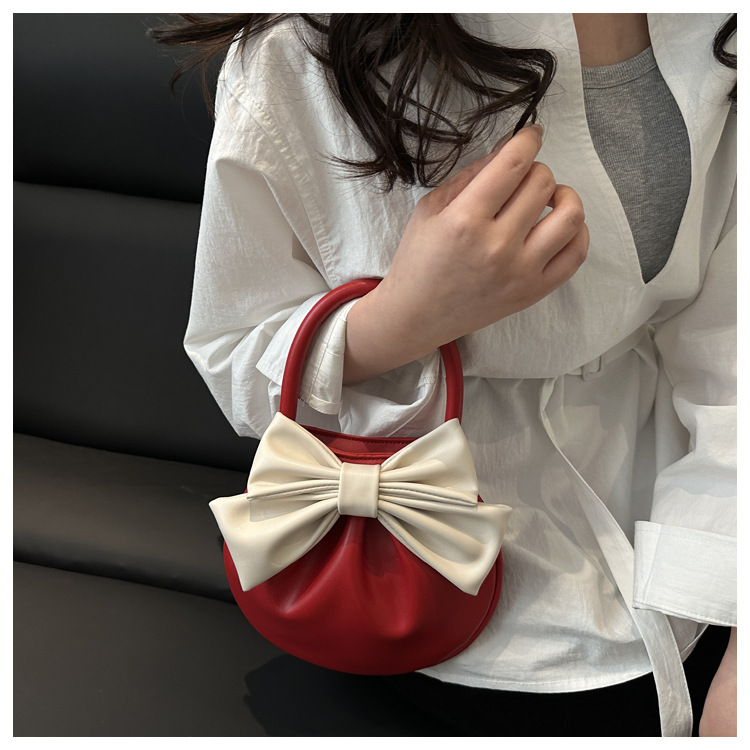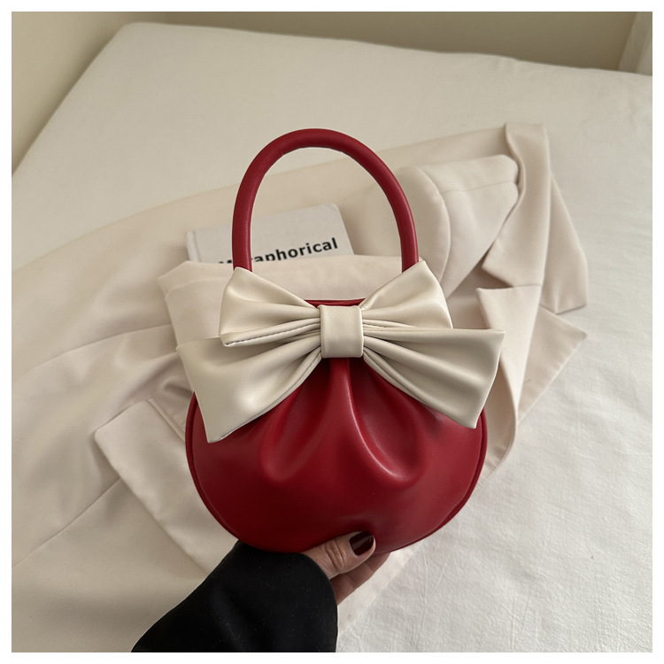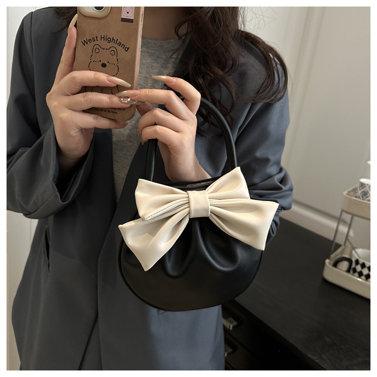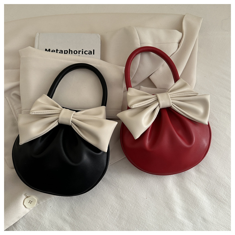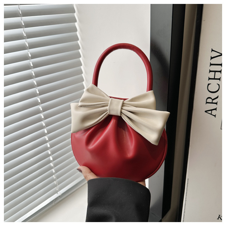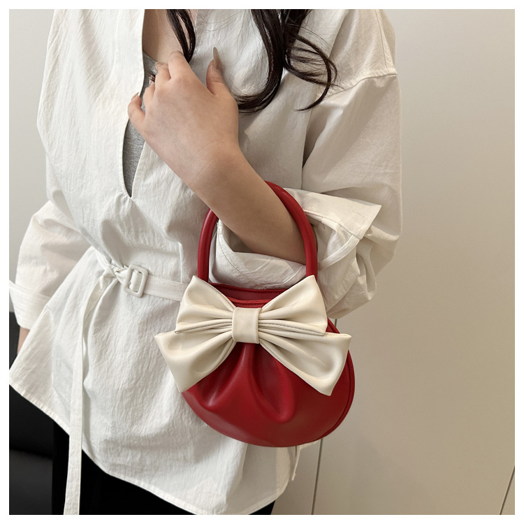 TJ2069# 小众设计蝴蝶结手提包2025新款高级感撞色小圆包时尚百搭高颜值女