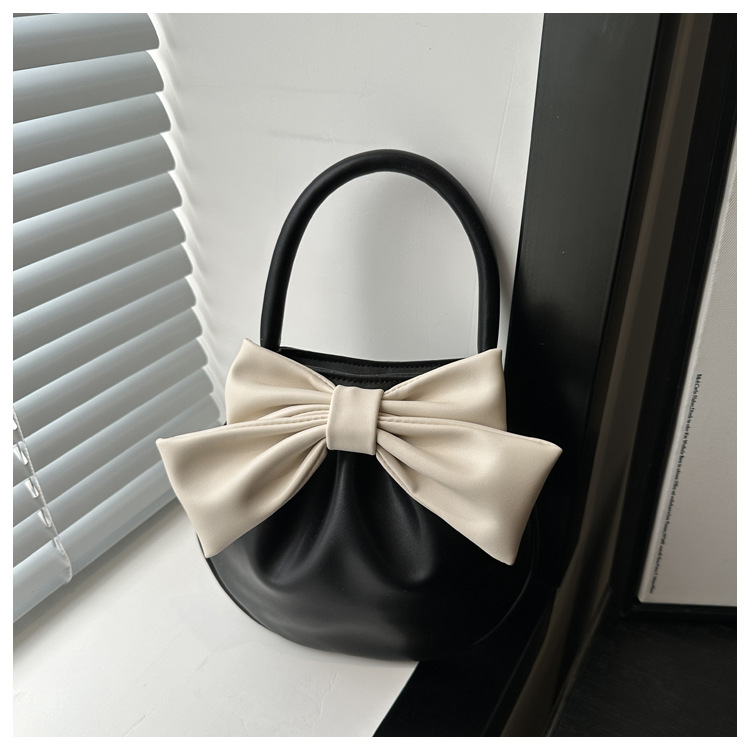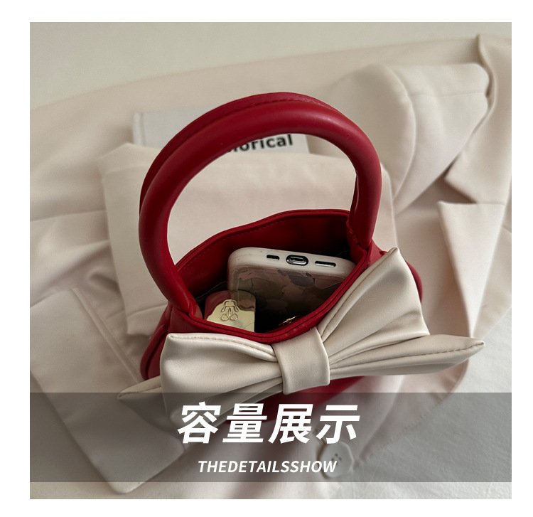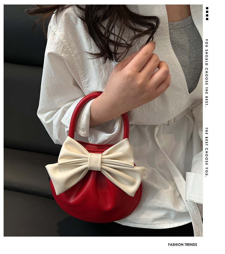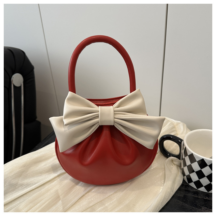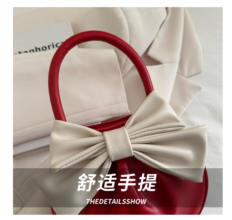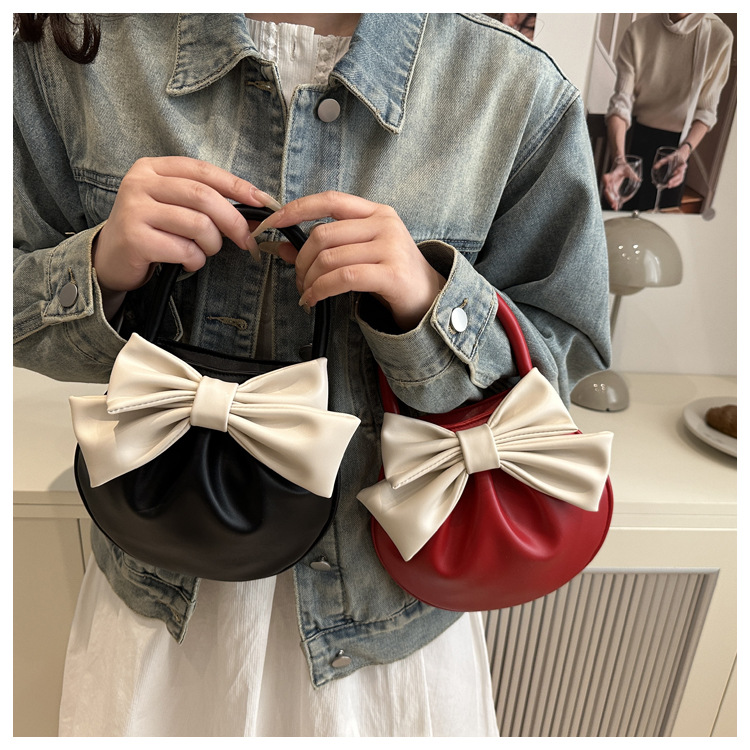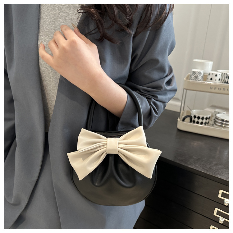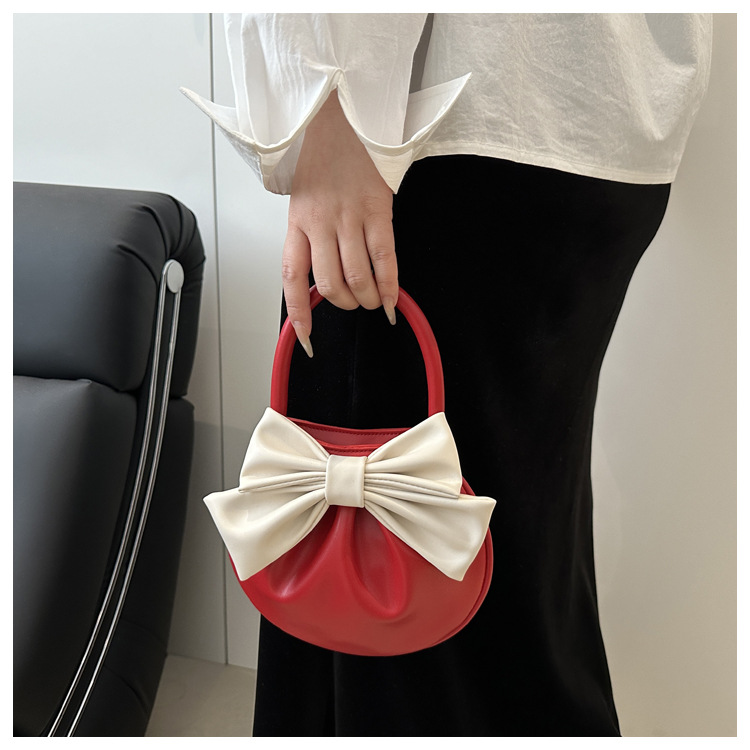 TJ2069# 小众设计蝴蝶结手提包2025新款高级感撞色小圆包时尚百搭高颜值女