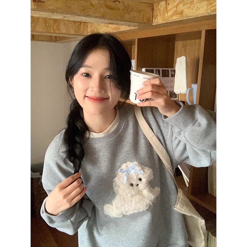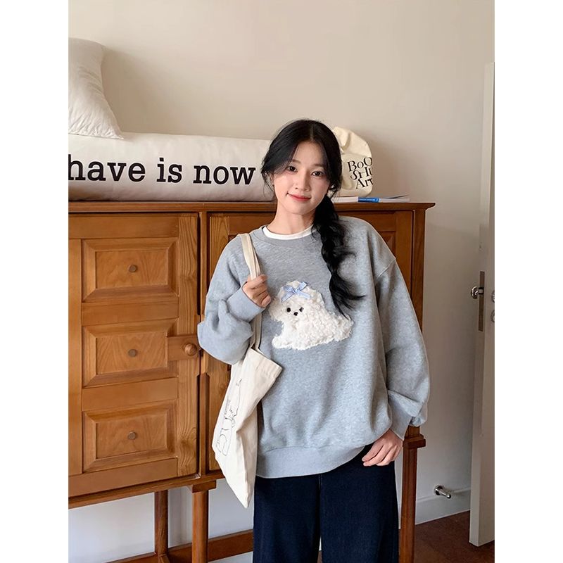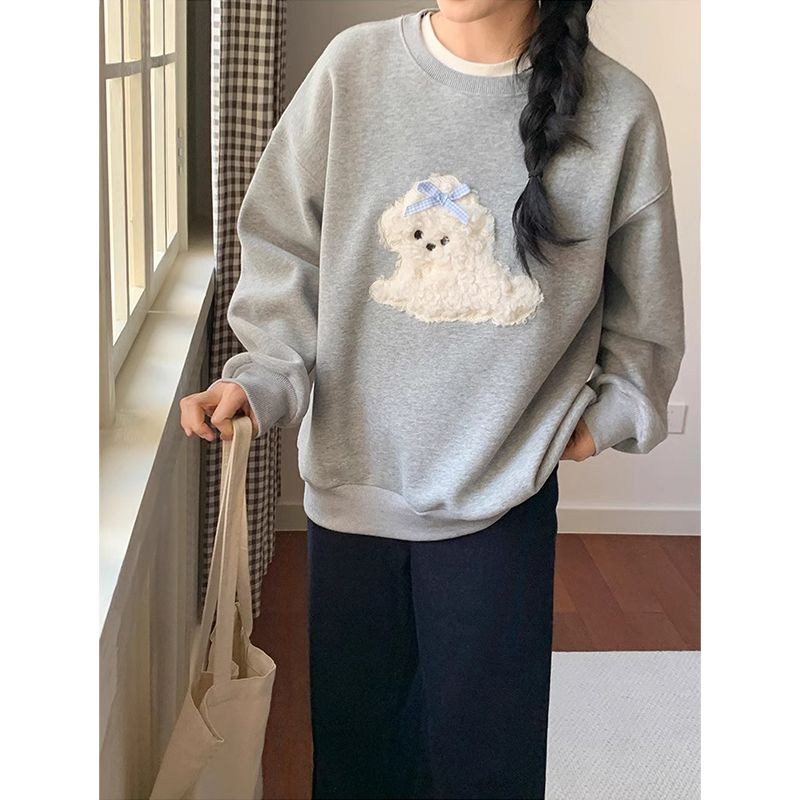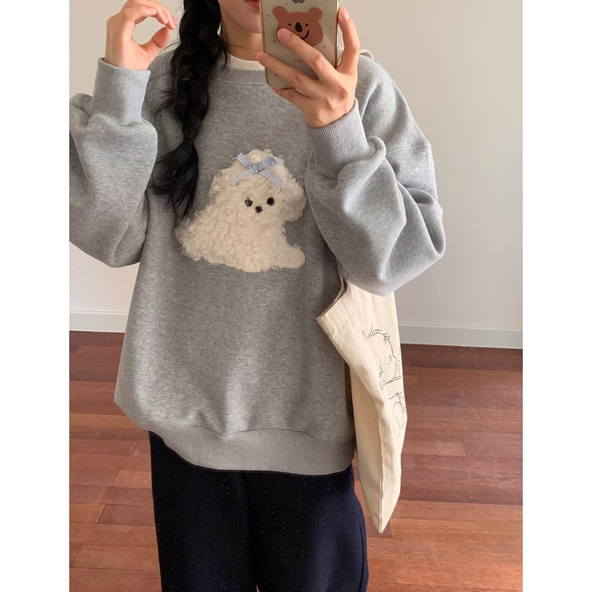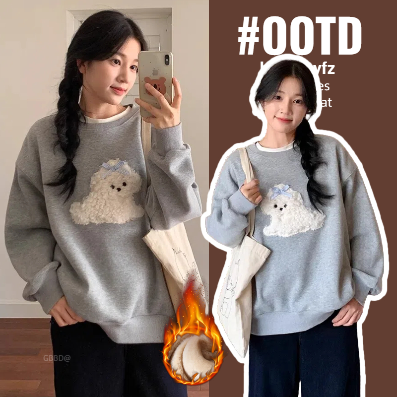 FA47947# 纯棉卫衣新款秋冬加绒加厚潮设计感圆领保暖卡通刺绣上衣 服裝批發女裝批發服飾貨源