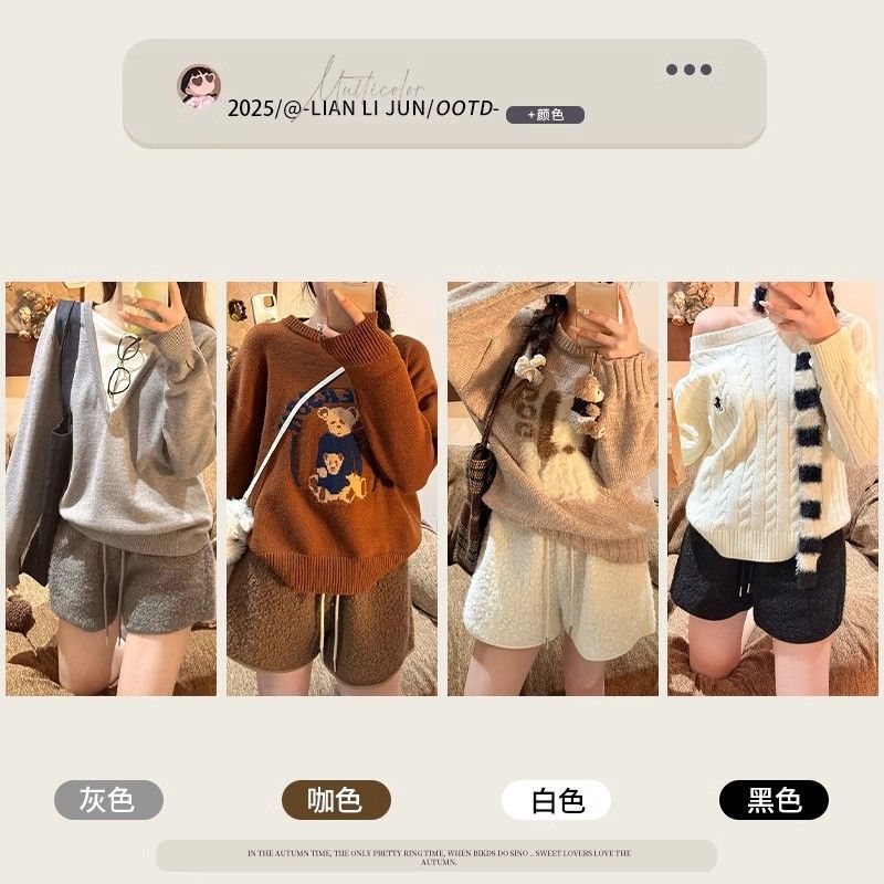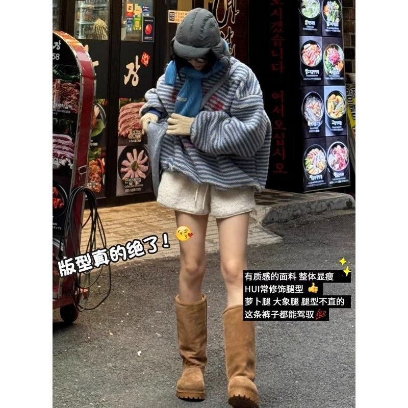 FA47953# 白色羊羔绒短裤女外穿秋冬新款复古保暖高腰A字显瘦休闲裤子 服裝批發女裝批發服飾貨源