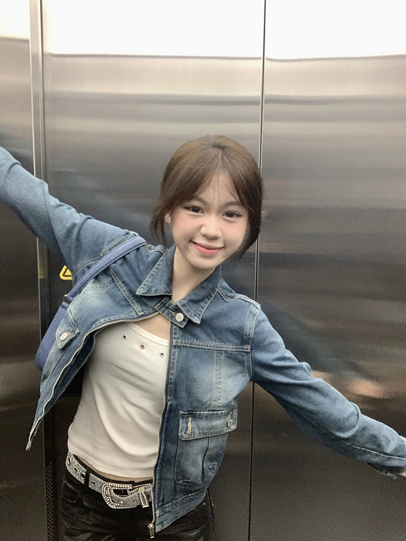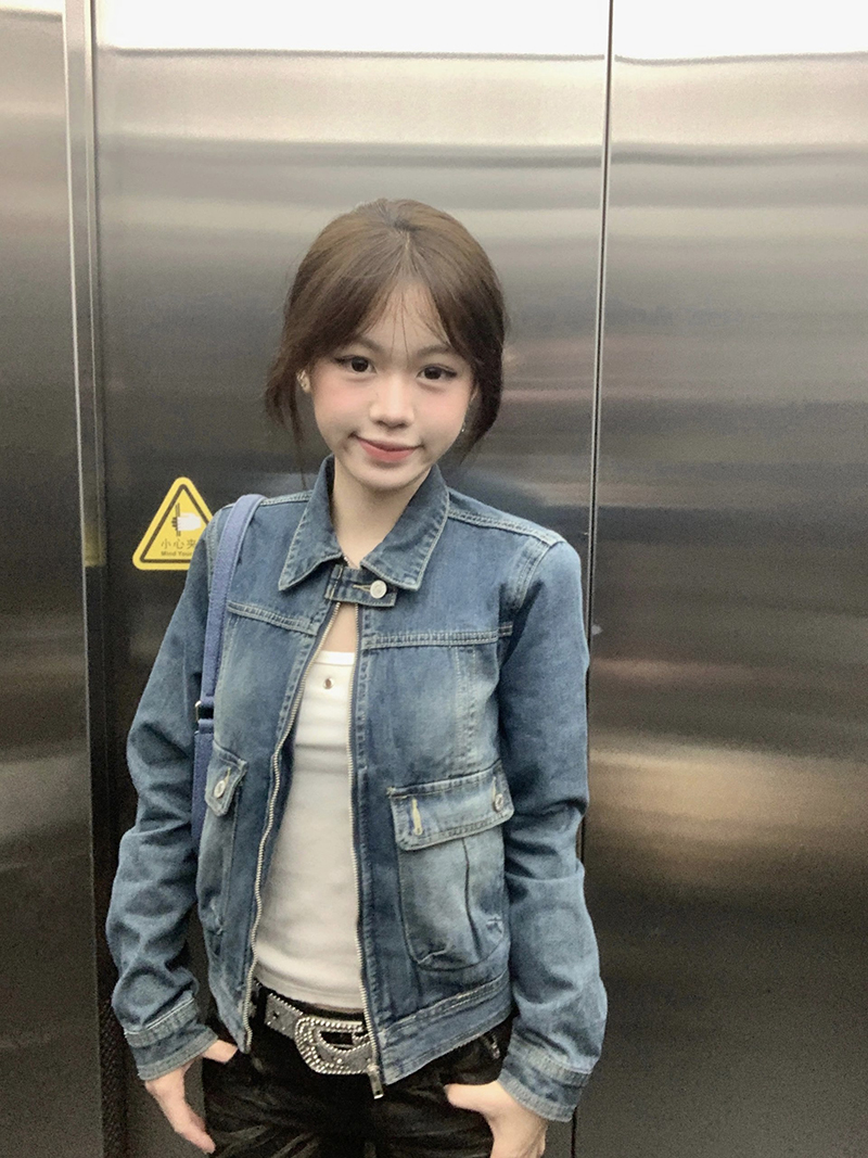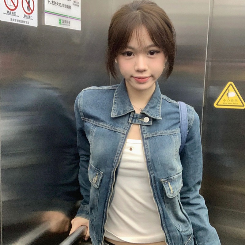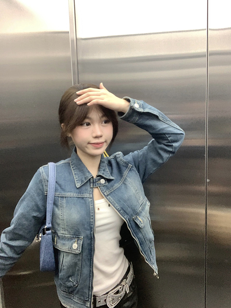 FA47954# 翻领牛仔外套女春季新款甜酷短款机车服韩版气质夹克外衣 服裝批發女裝批發服飾貨源