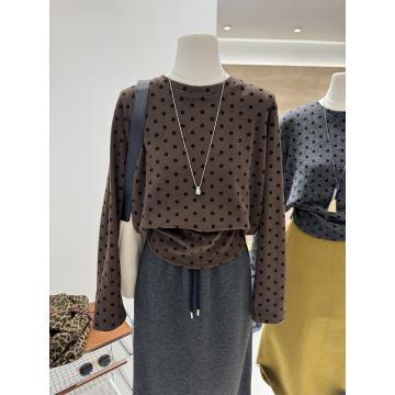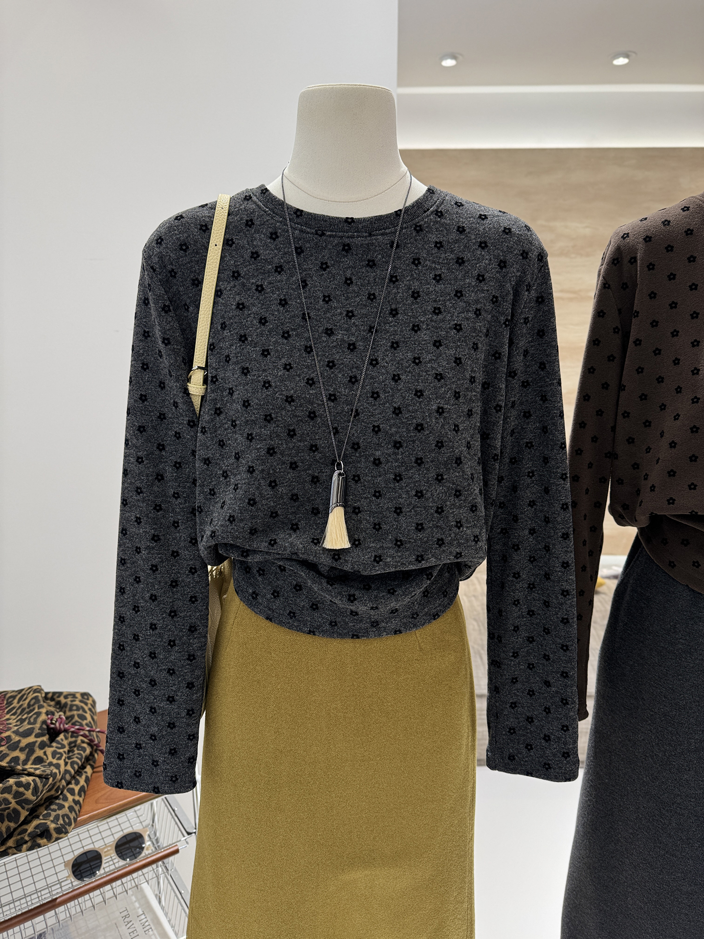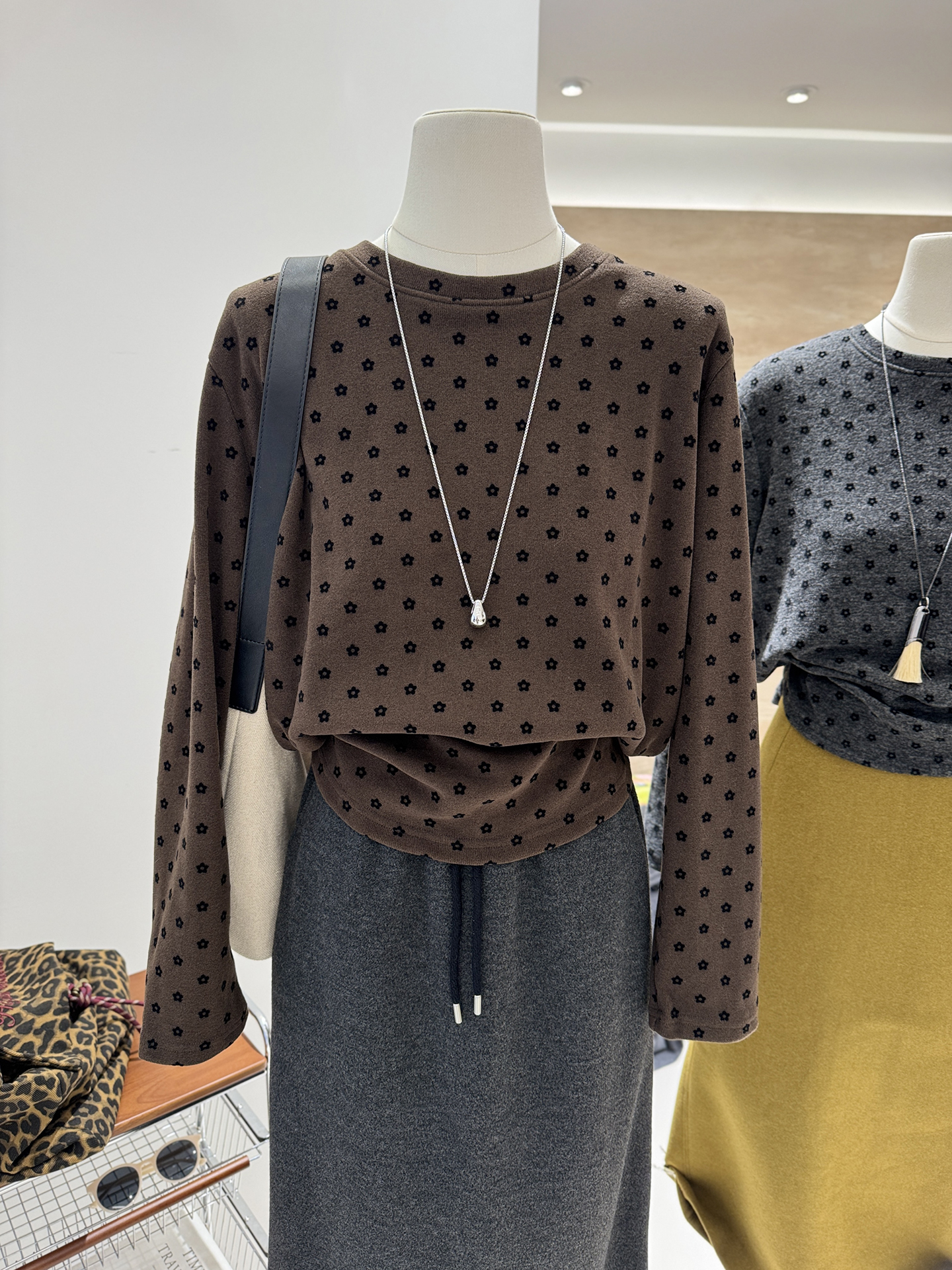 FA47967# 螺纹德绒大码300斤秋冬季韩系小花磨毛长袖宽松显瘦打底衫T恤女潮 服裝批發女裝批發服飾貨源