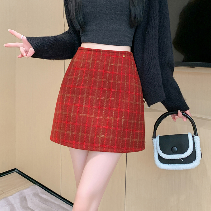 FA48374# 格子毛呢半身裙女冬季款包臀短裙高腰a字裙 服裝批發女裝批發服飾貨源