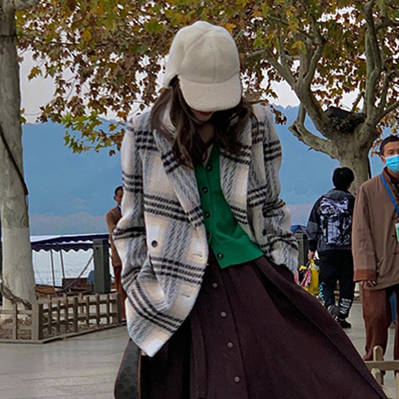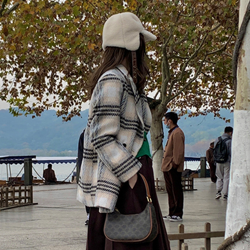FA48539# 大码毛呢西装外套女秋冬新款爆款高级感格子独特小香风棉服女 服裝批發女裝批發服飾貨源