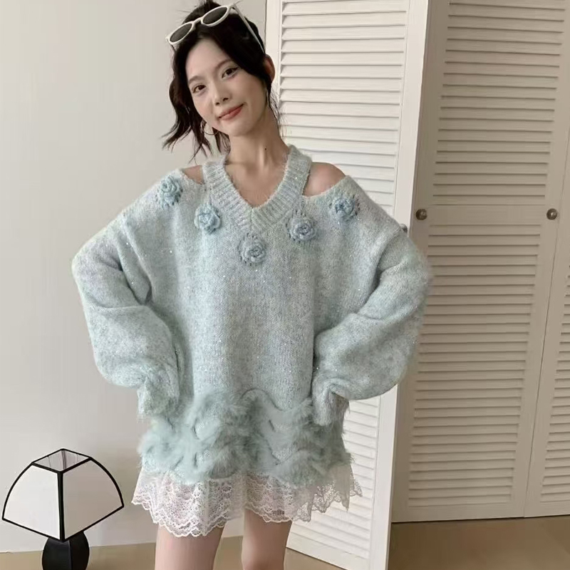 FA48548# 秋冬新款时尚套头装车条狐狸毛皮草毛衣针织衫百搭女装短外套 服裝批發女裝批發服飾貨源
