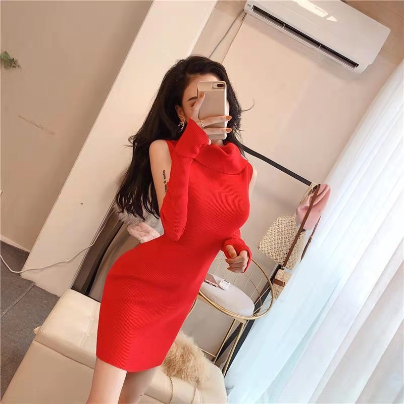 新款韩版宽松加厚半高领打底针织衫毛衣连衣裙