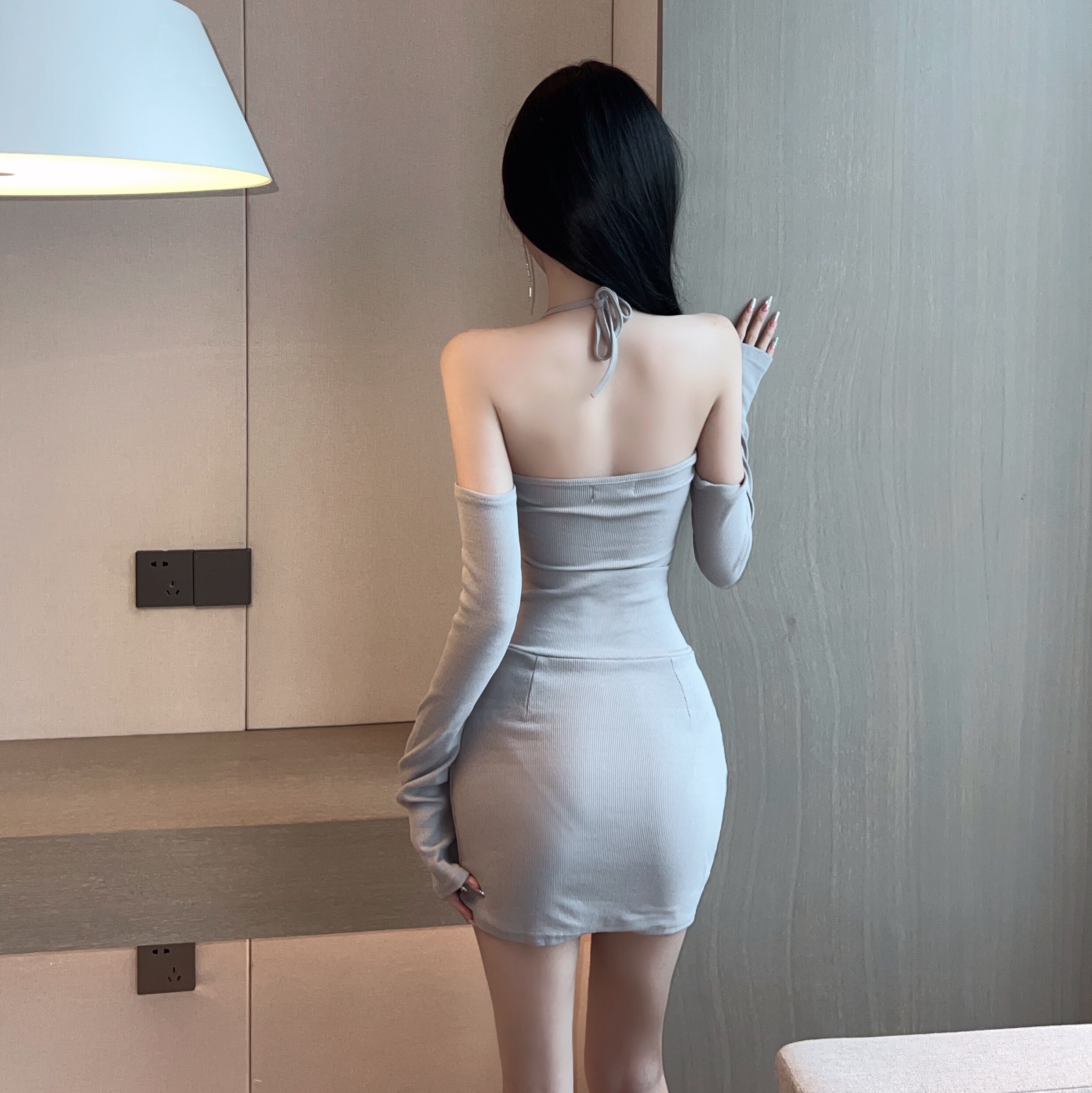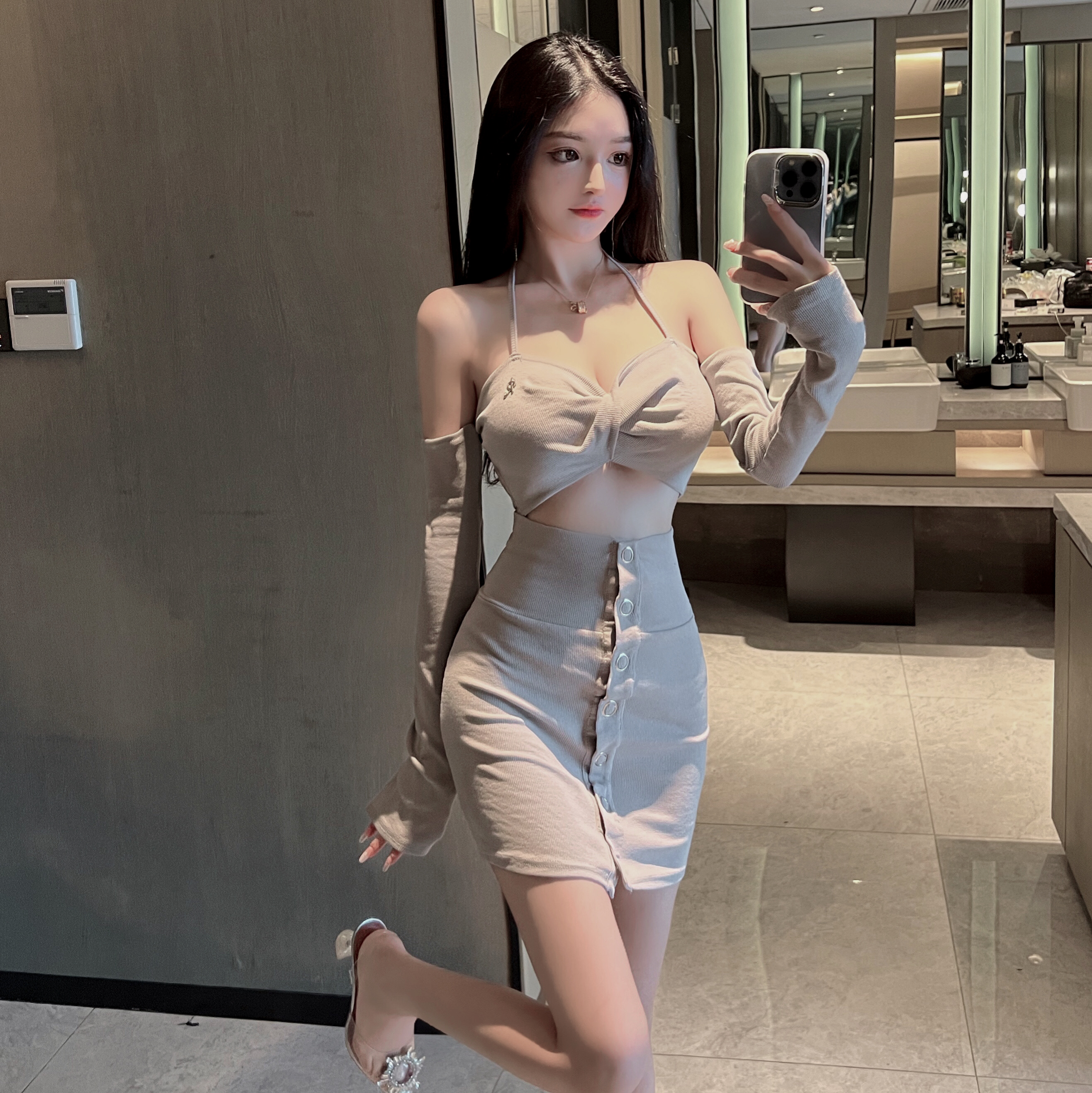 新款性感纯欲风长袖吊带+高腰显瘦包臀半身裙