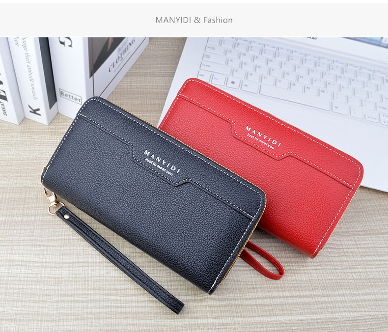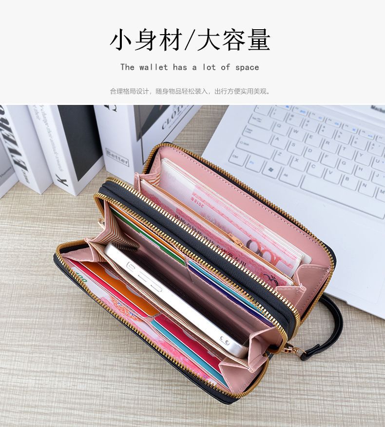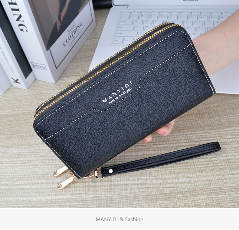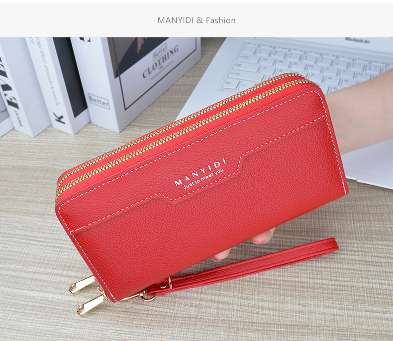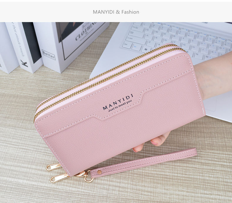 TJ2121# 新款钱包女长款双拉链钱包钱夹大容量双层手拿包软皮夹零钱手机包