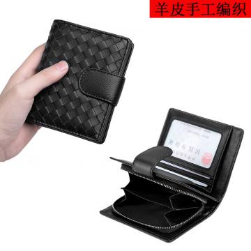 TJ2115# 韩版钱包女短款竖款手工编织纹羊皮真皮钱包搭扣男女皮夹银包批发