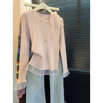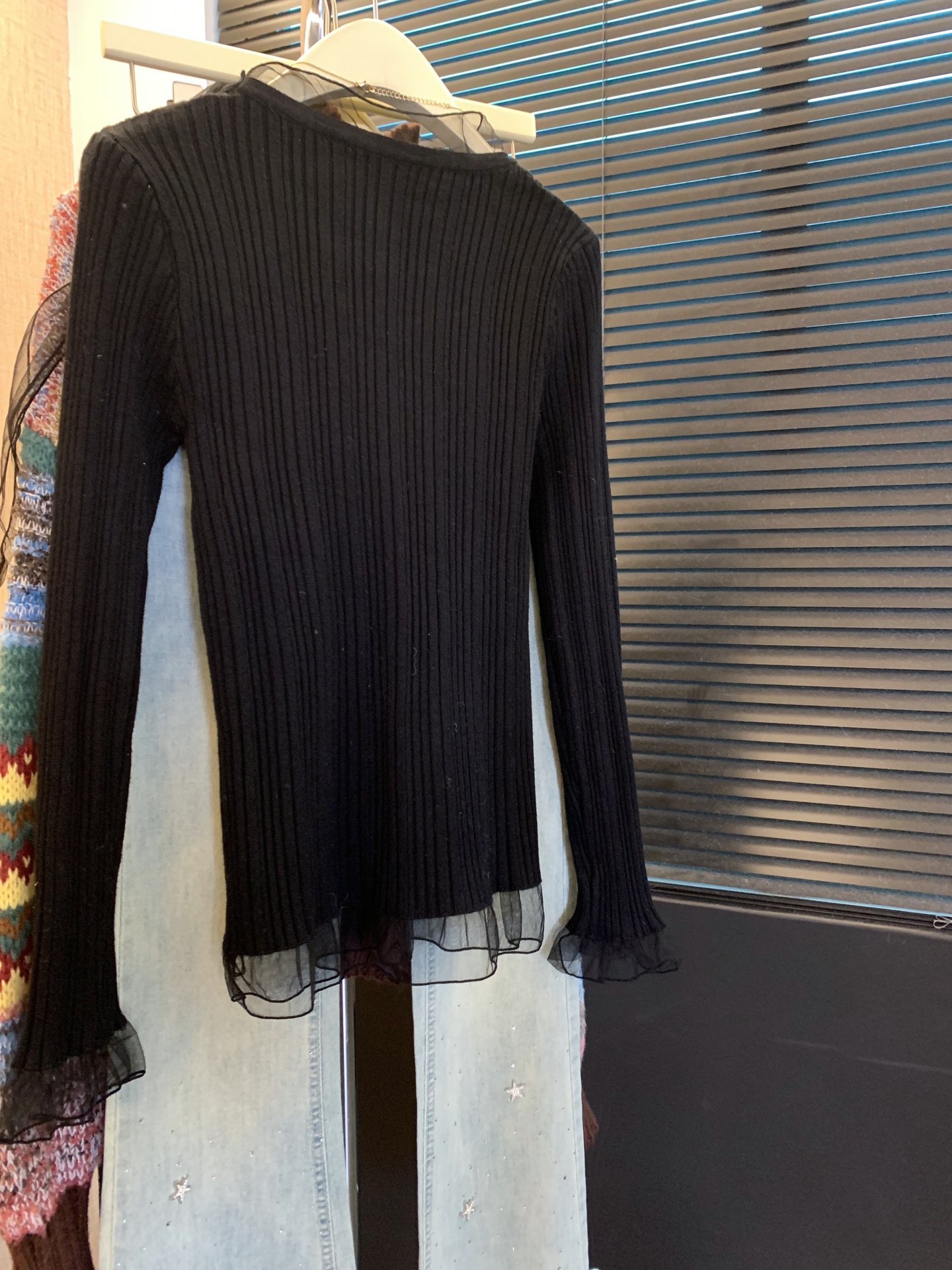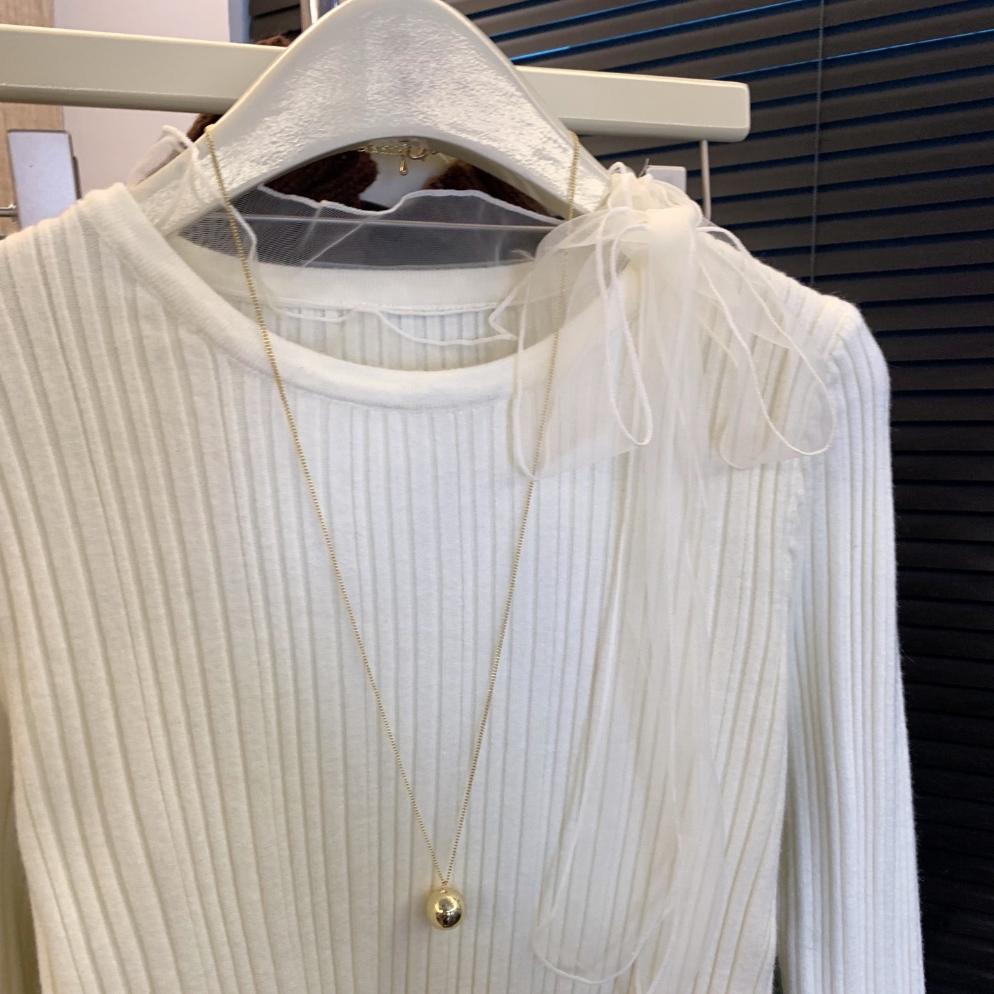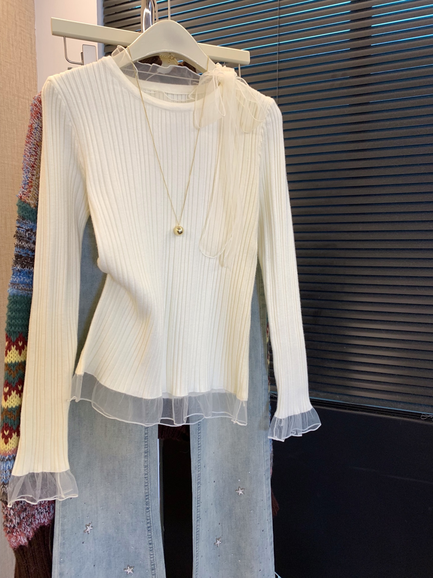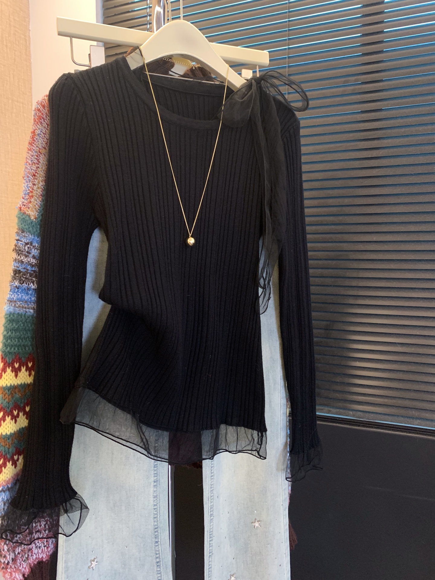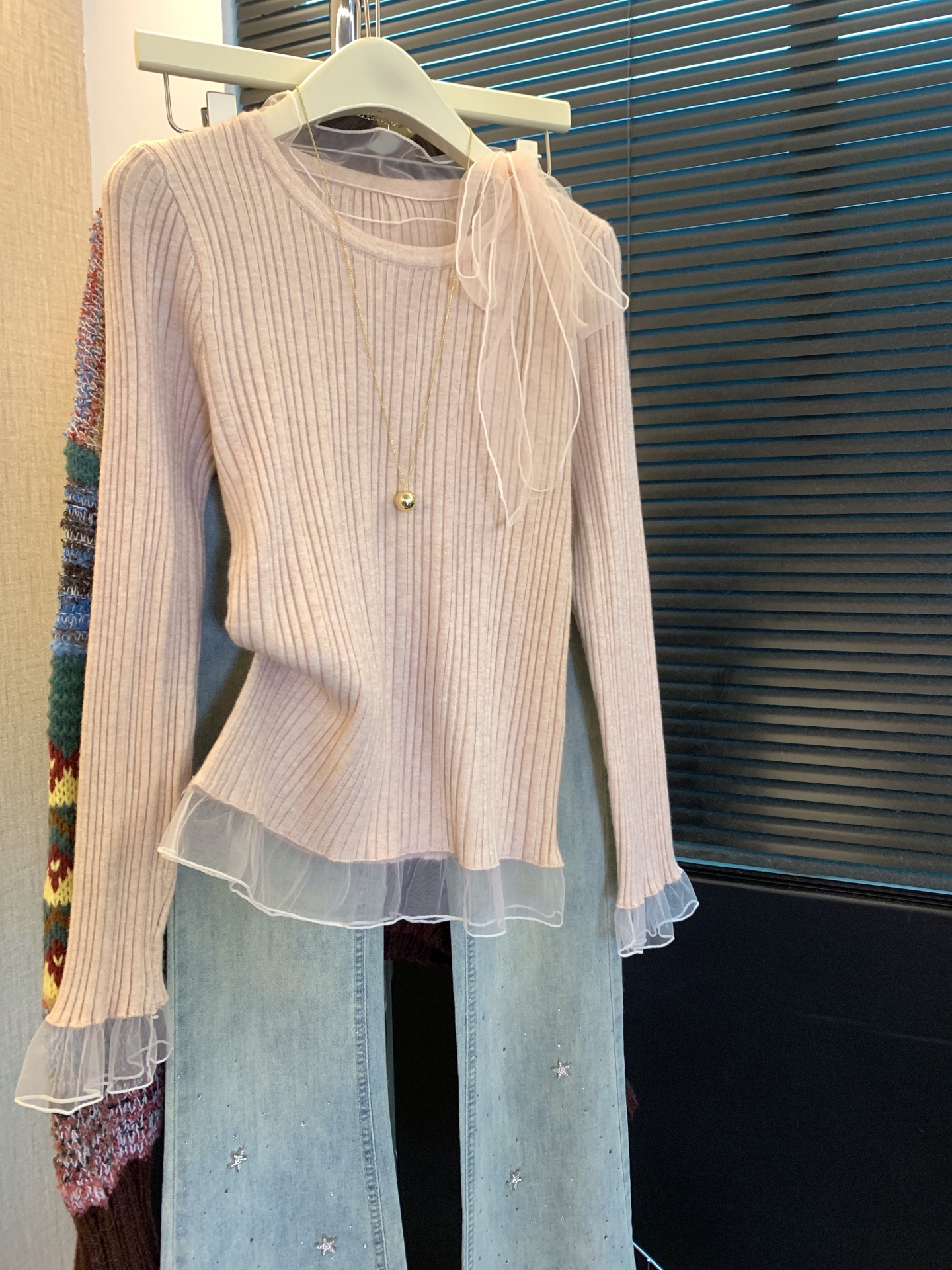 FA49778# 韩系甜美蕾丝边羊毛针织衫女秋冬设计感小众休闲百搭打底上衣 服裝批發女裝批發服飾貨源