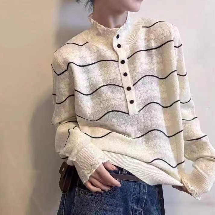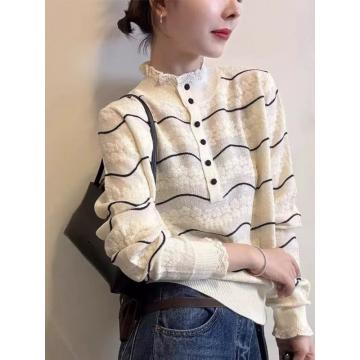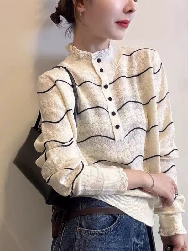 FA49795# 蕾丝花边毛针织衫女秋冬款法式时尚温柔洋气百搭长袖打底上衣 服裝批發女裝批發服飾貨源