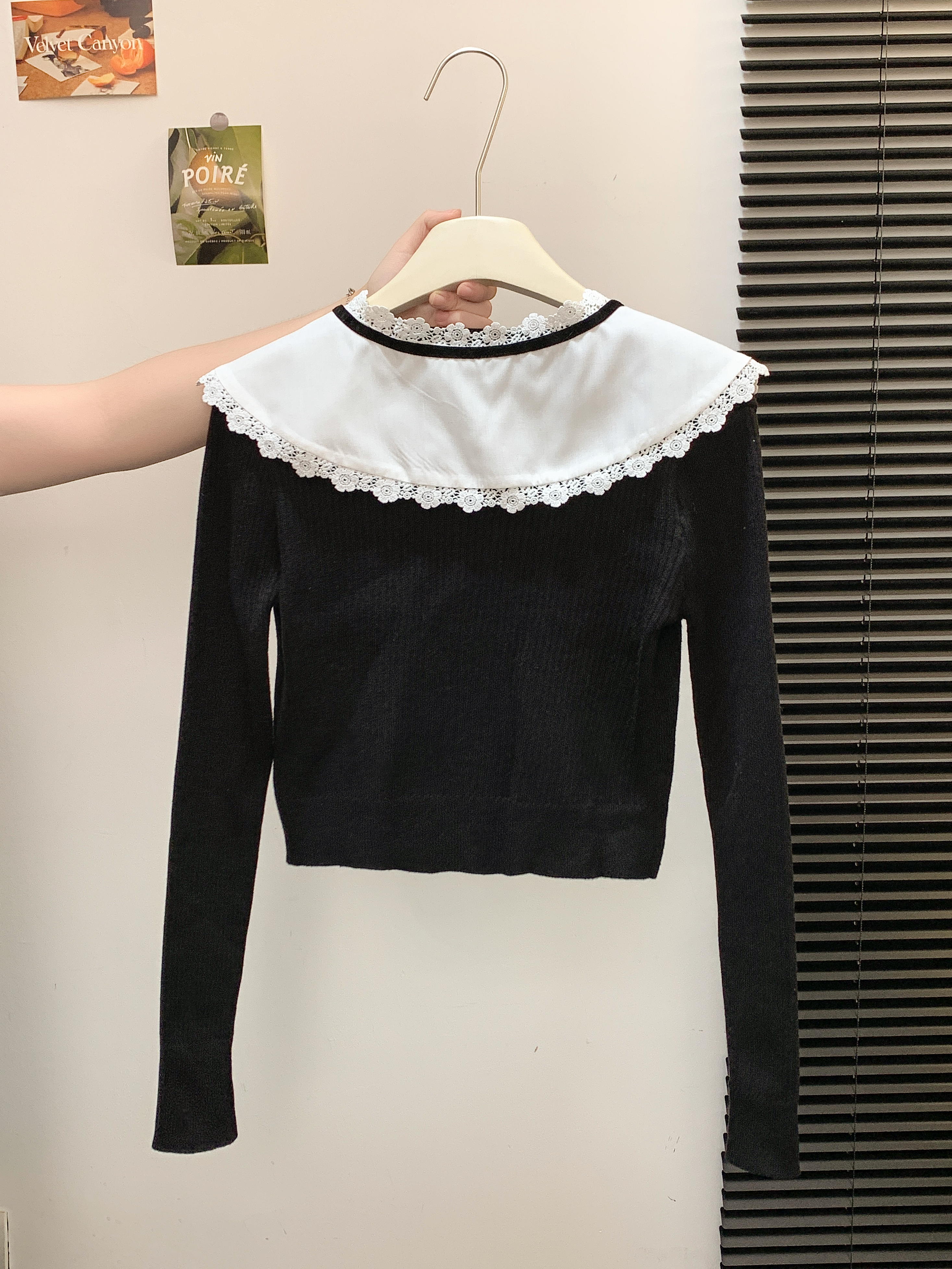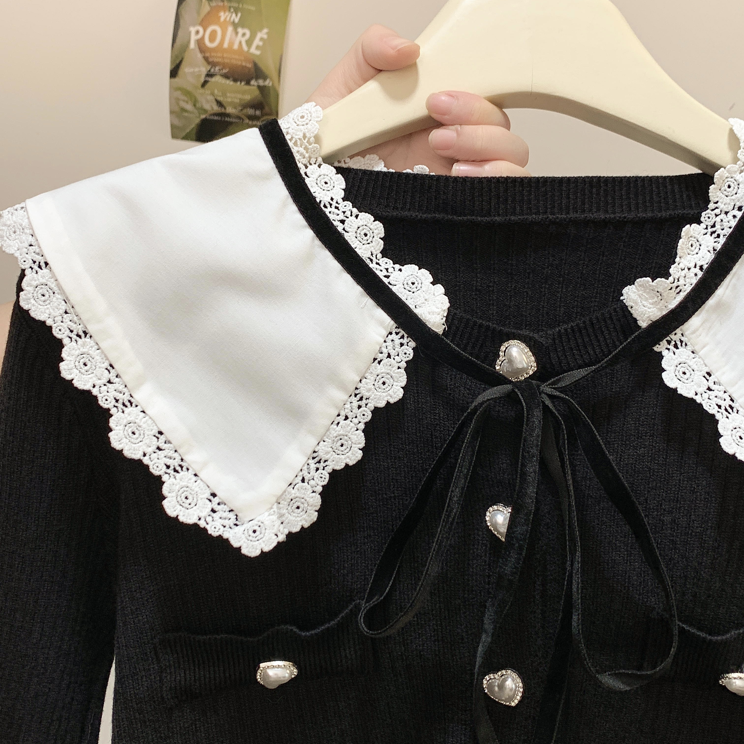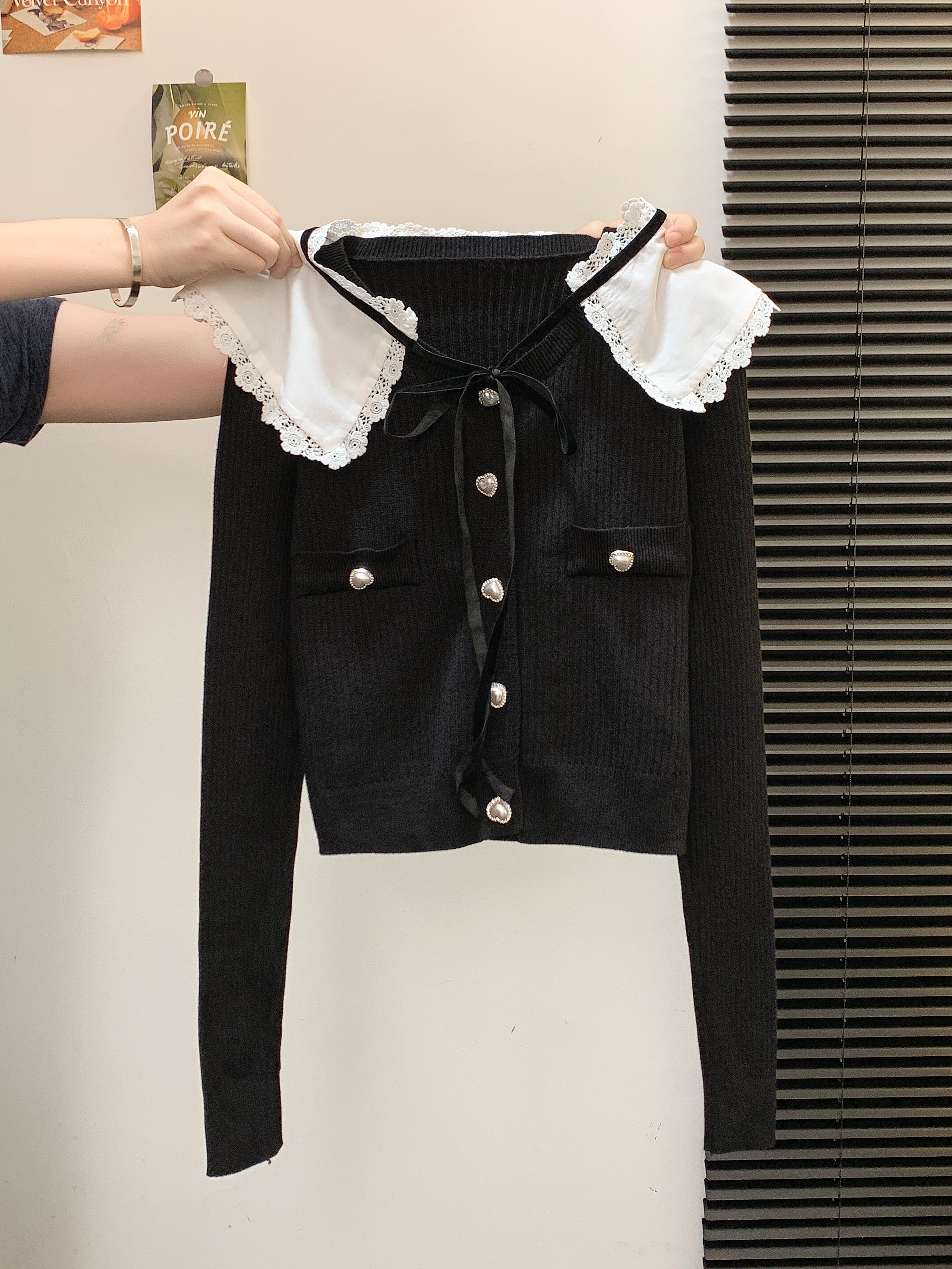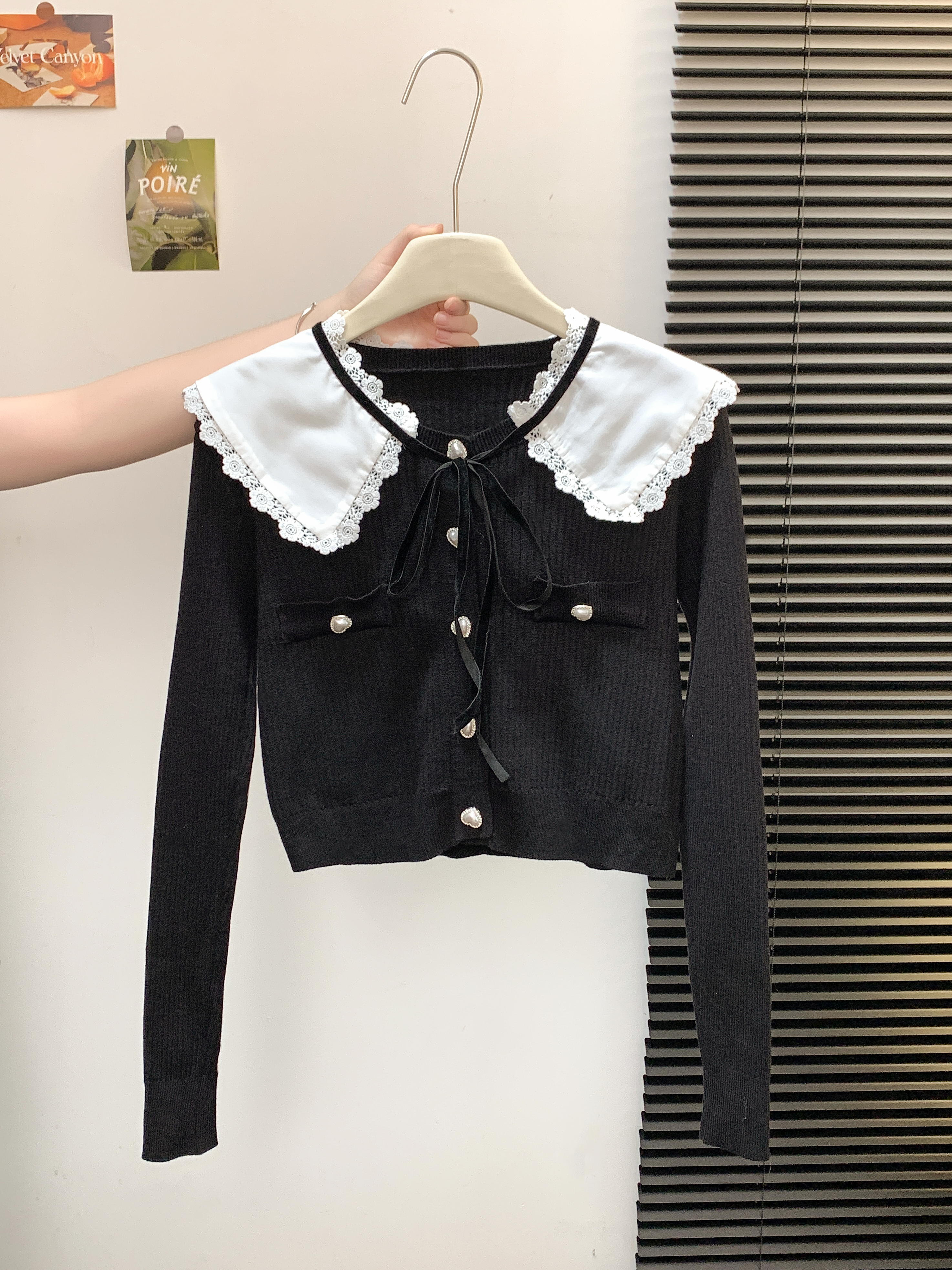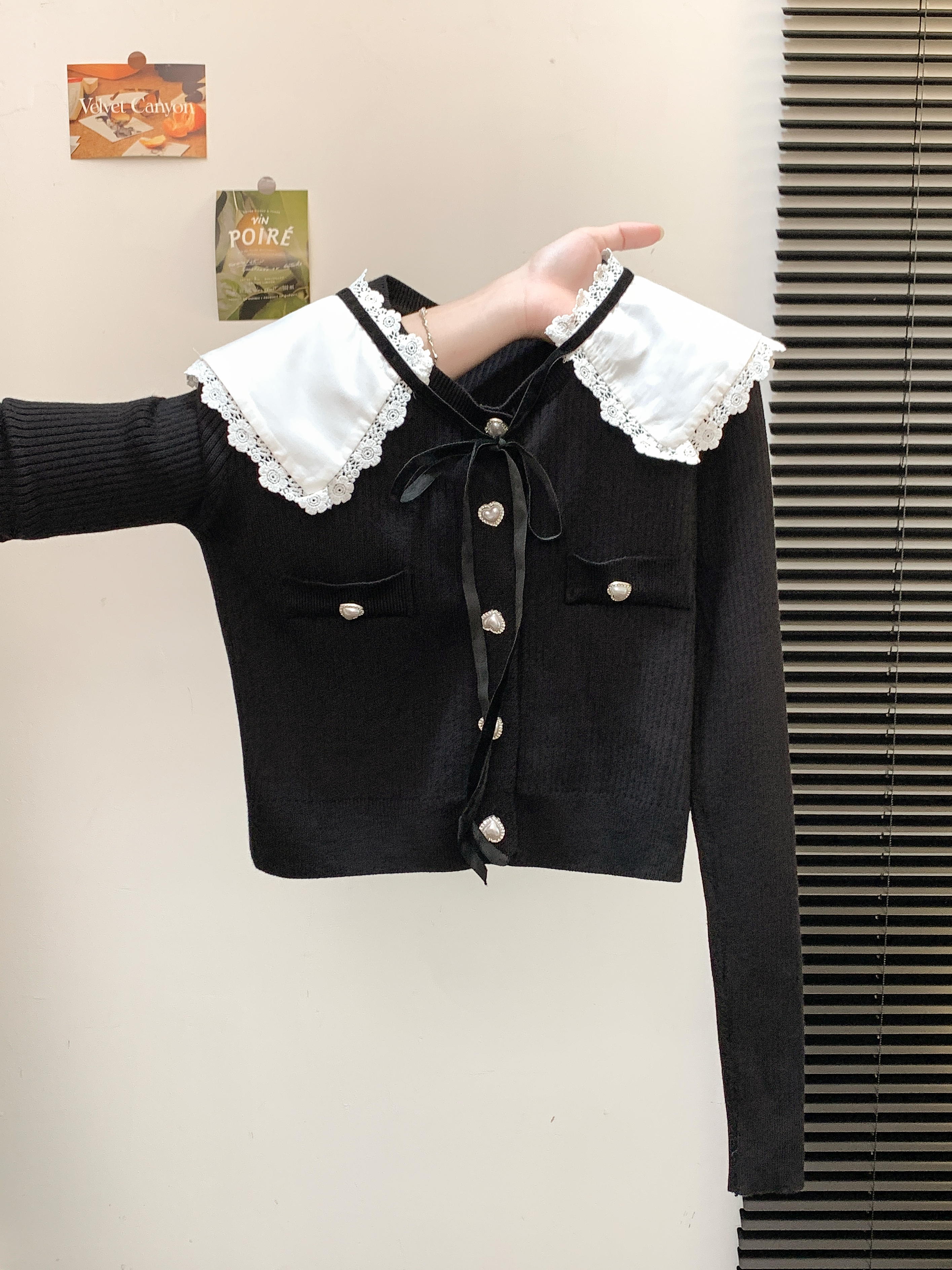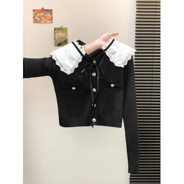 FA49822# 法式小香风娃娃领针织衫女秋设计感撞色单排扣短款毛衣 服裝批發女裝批發服飾貨源