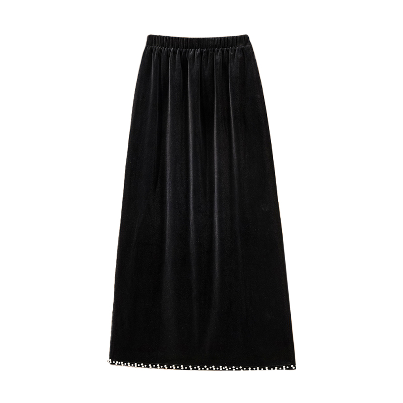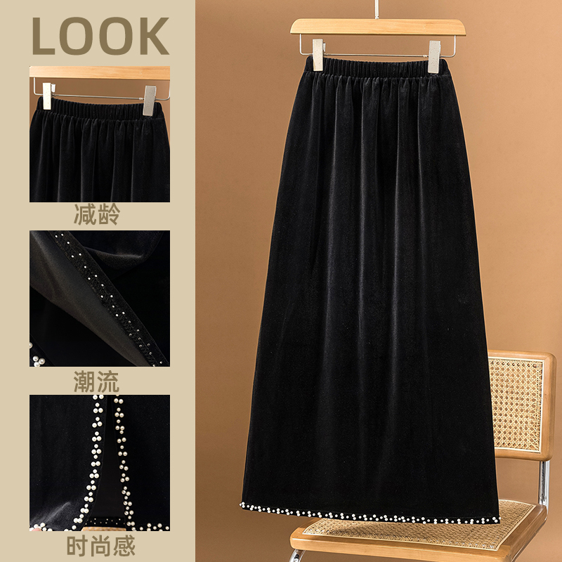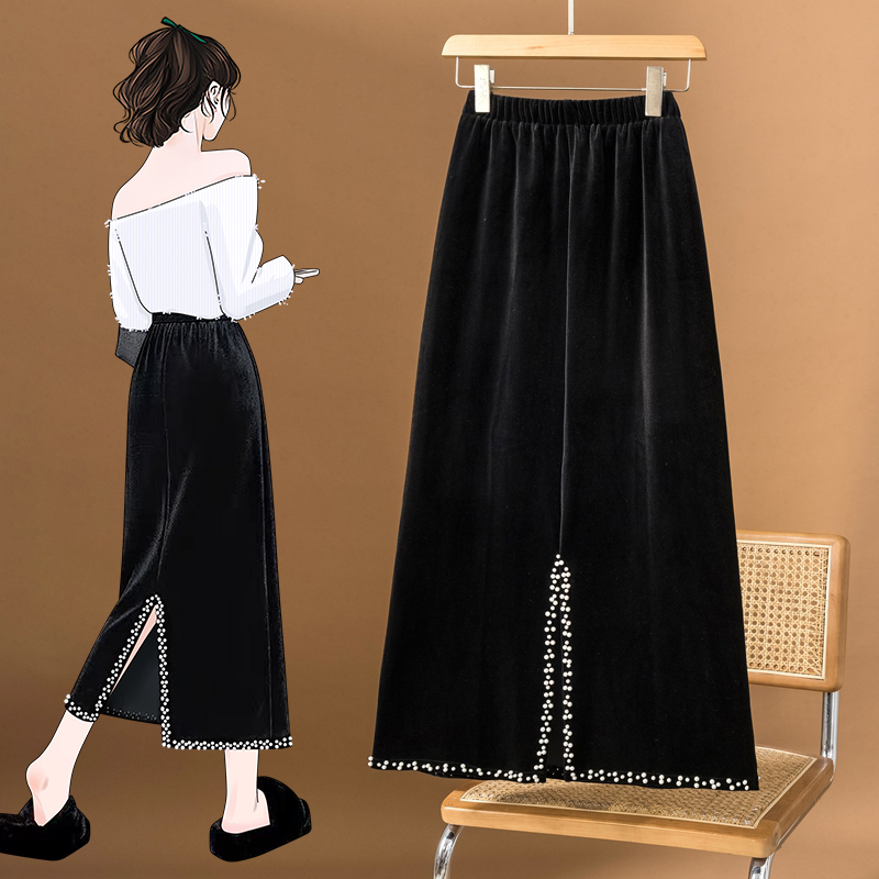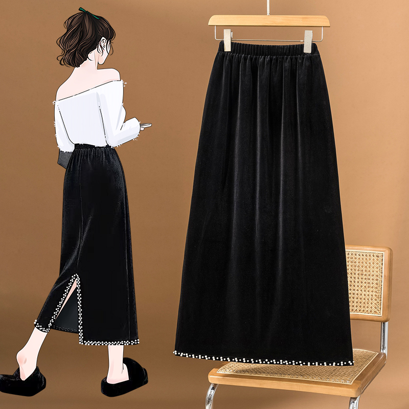 大码秋冬款女装新款高级感丝绒设计感后开叉百搭显瘦半身裙 服裝批發女裝批發服飾貨源