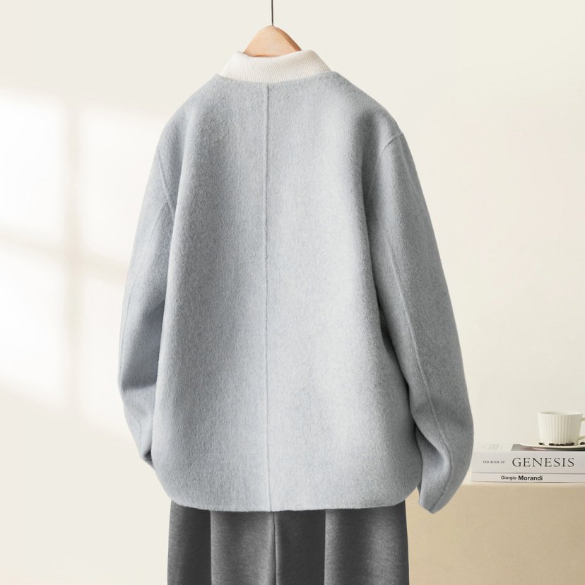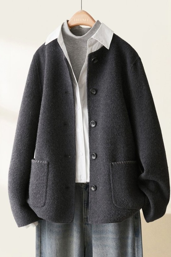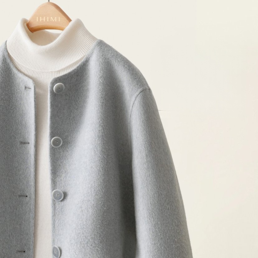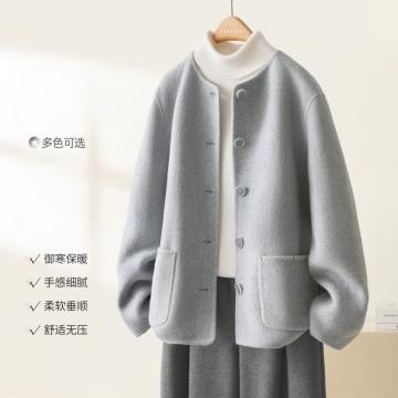 FA49940# 冬季高级感圆领慵懒落肩袖毛呢外套上衣女 服裝批發女裝批發服飾貨源