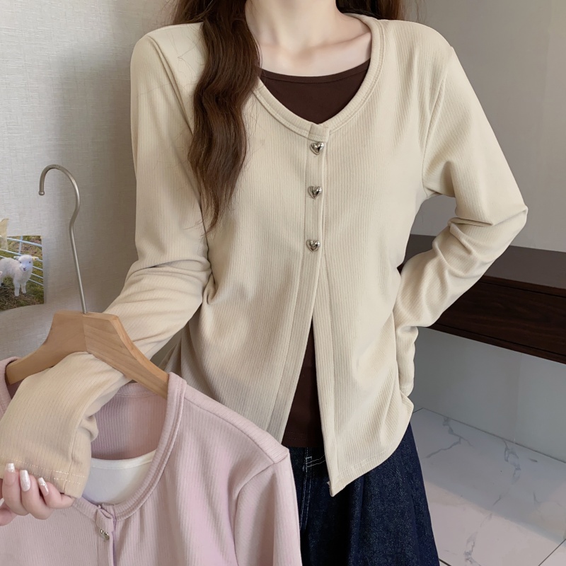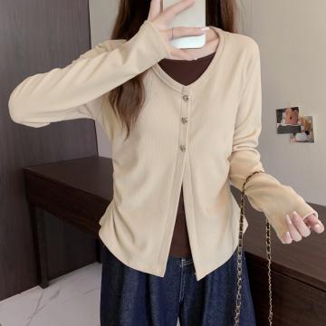 FA50171# 冬季大码长袖假两件T恤加厚保暖显瘦百搭减龄别致打底衫 服裝批發女裝批發服飾貨源