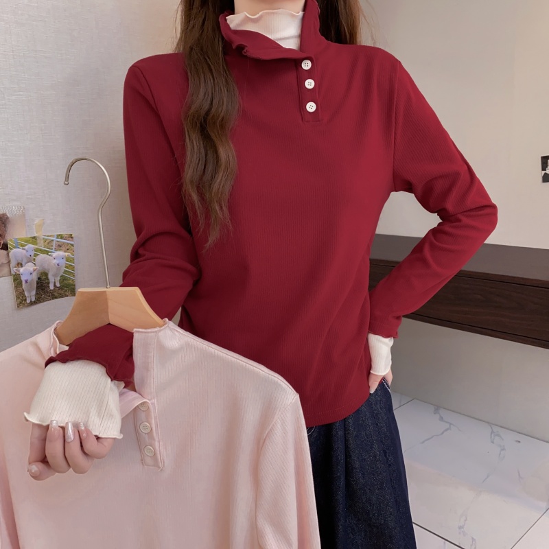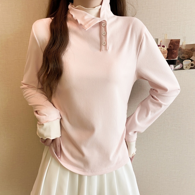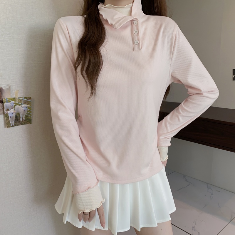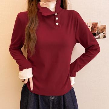 FA50172# 冬季大码长袖假两件T恤加厚保暖显瘦百搭减龄别致打底衫 服裝批發女裝批發服飾貨源