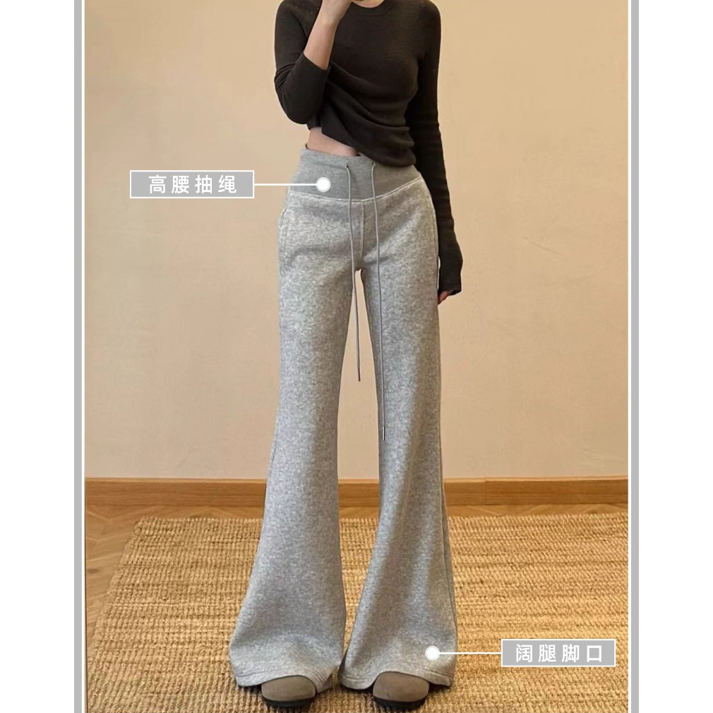 首页 > 牛仔裤、长裤 > 美式浅灰色运动微喇裤女秋冬新款休闲宽松显瘦喇叭裤加绒卫裤 服裝批發女裝批發服飾貨源