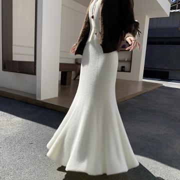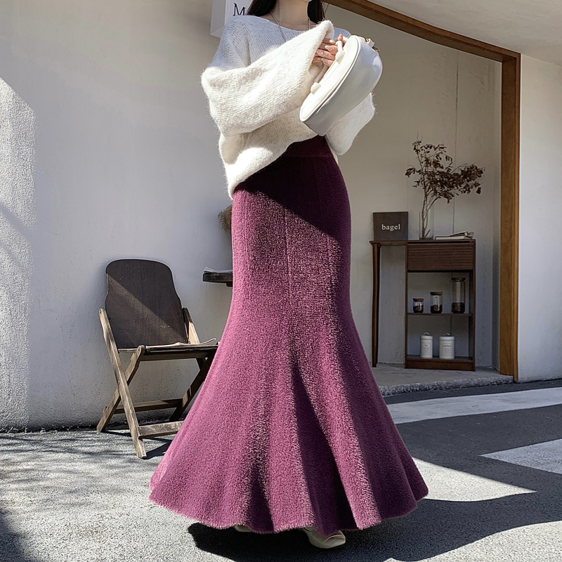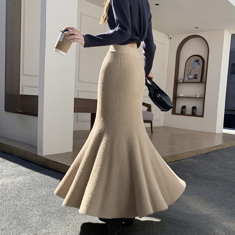 FA50664# 秋冬水貂毛针织半身裙长裙女加厚高腰显瘦气质包臀鱼尾裙 服裝批發女裝批發服飾貨源