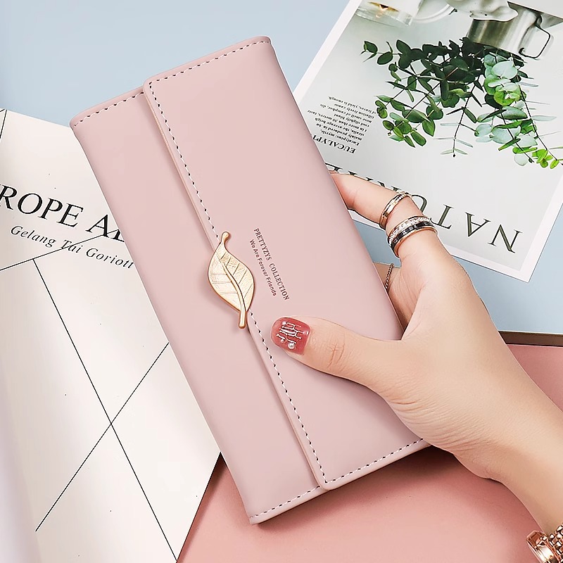 TJ2130# 钱包女士2025新款爆款大容量女士长款钱包小清新叶子卡包手拿包女