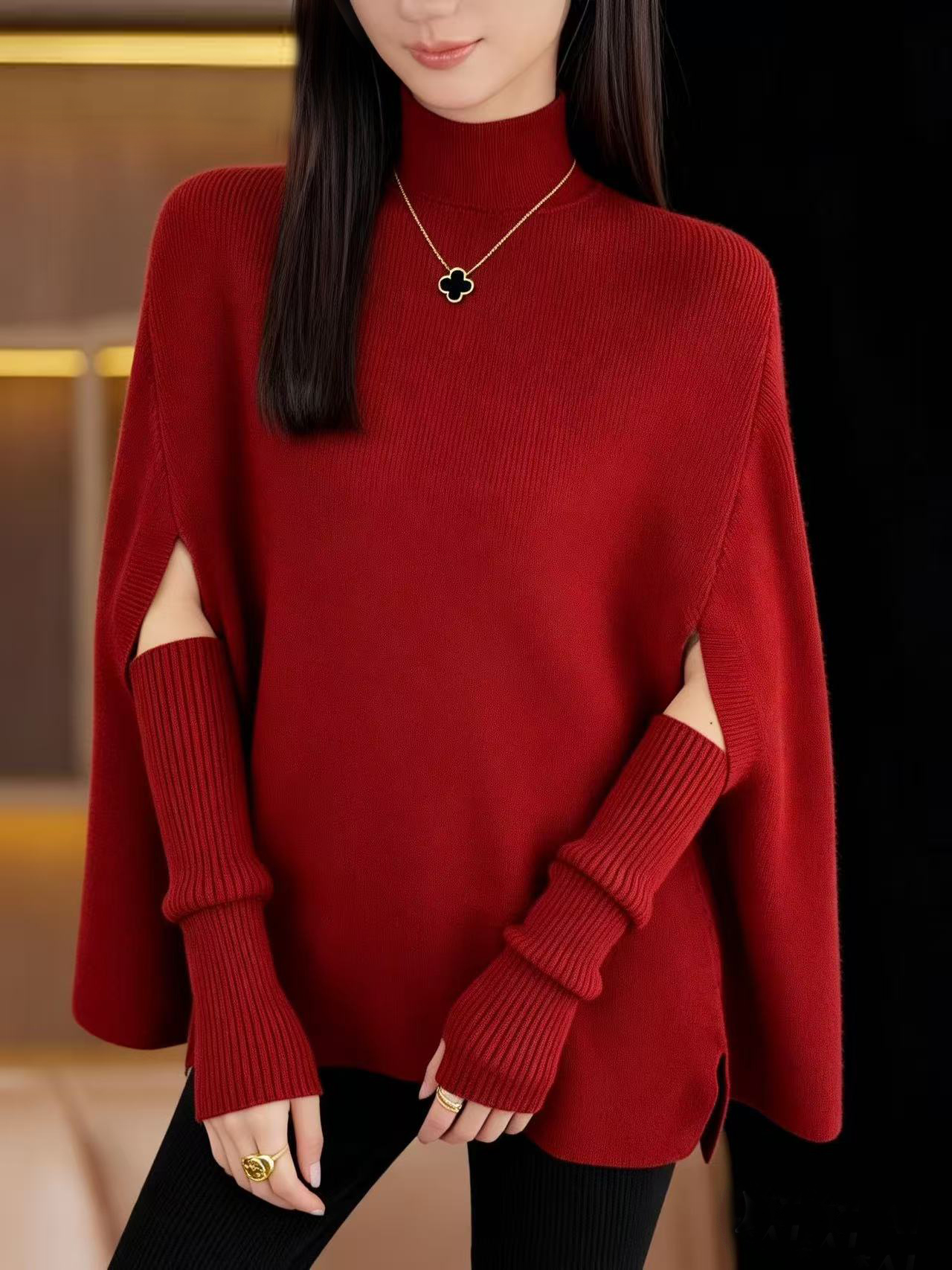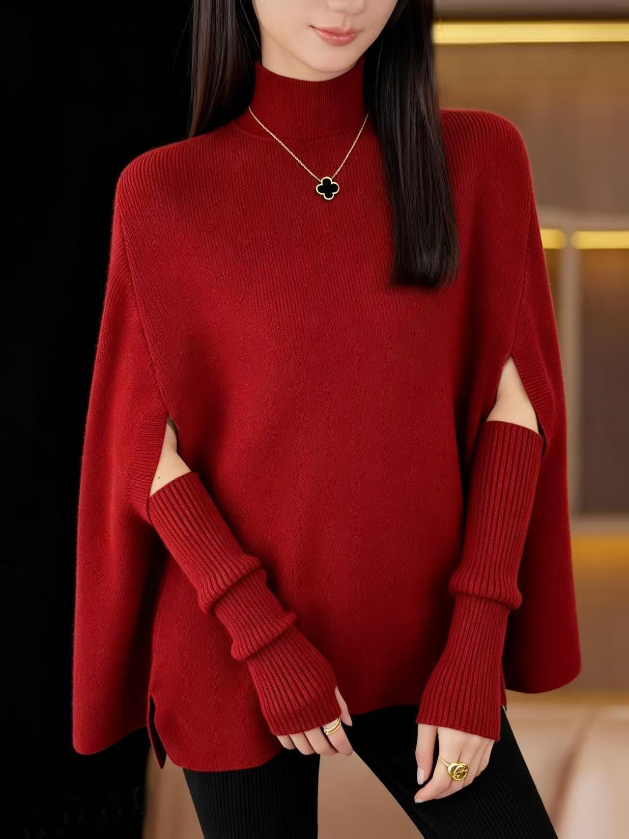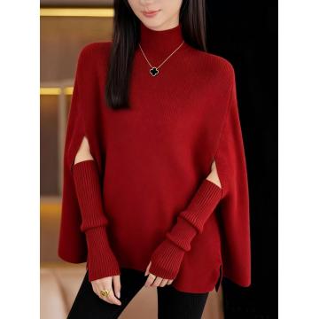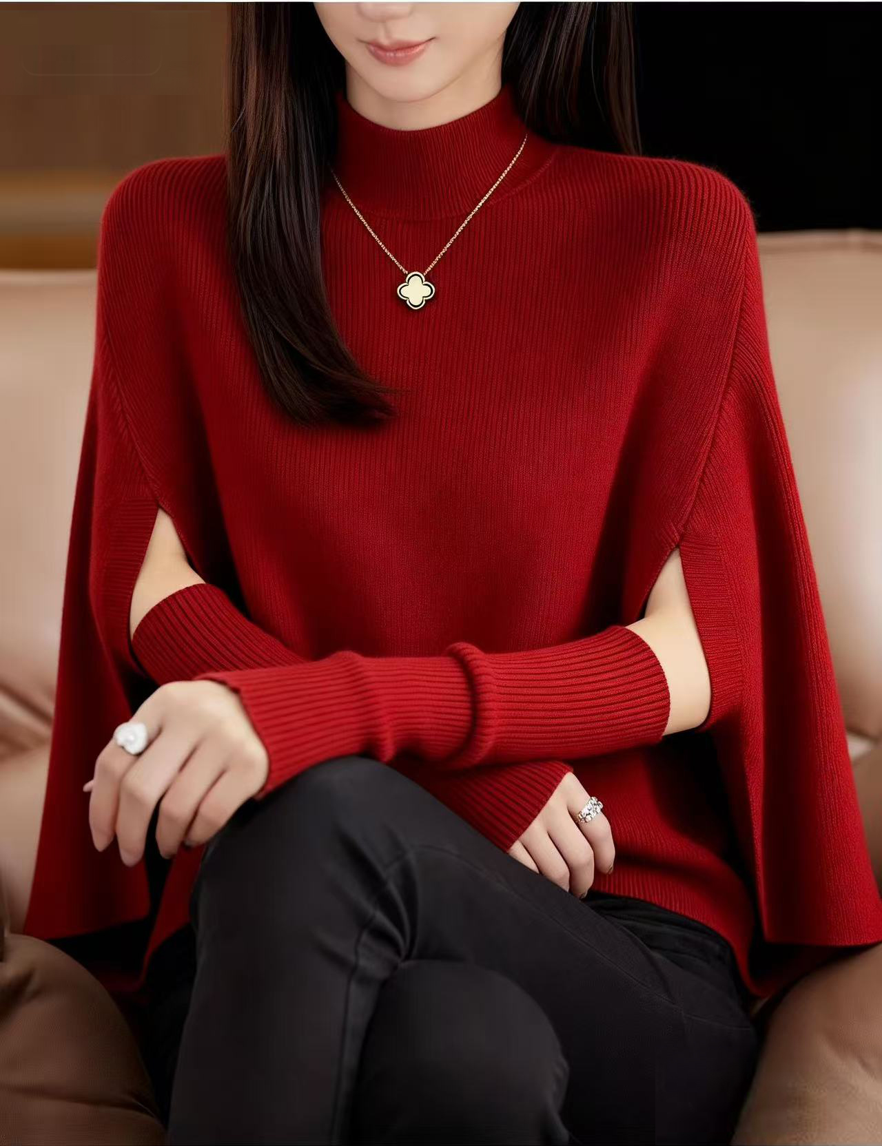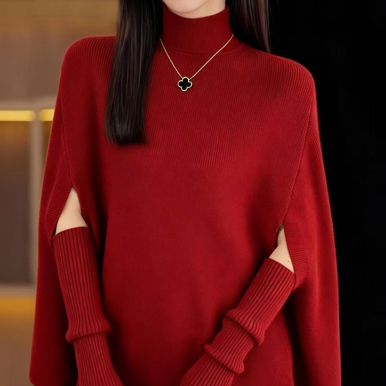 FA50771# 冬季圣诞氛围感高领斗篷披肩法式复古袖套针织毛衣外套