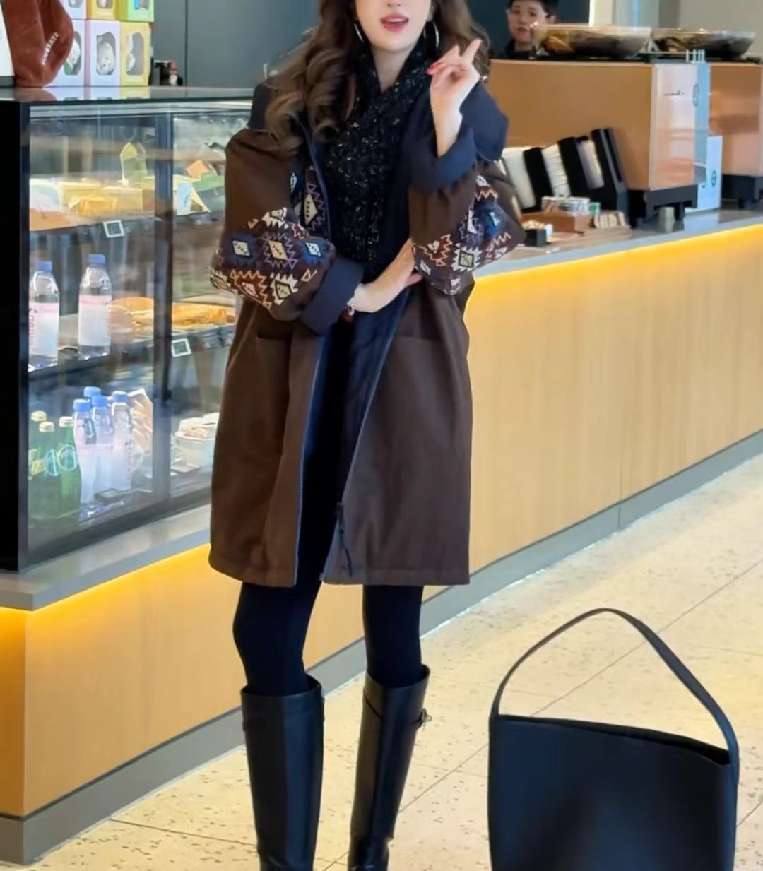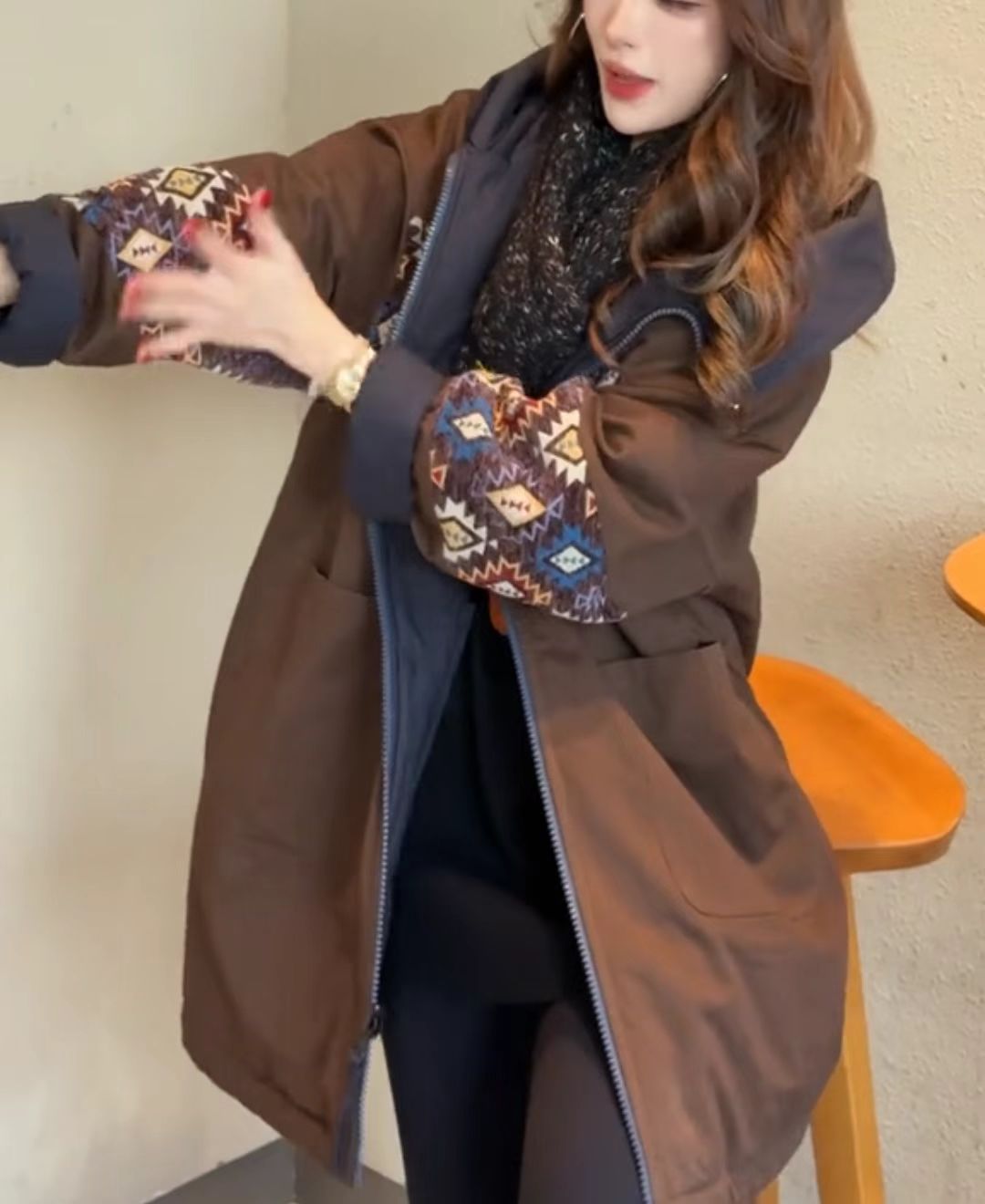 FA50978# 冬季时尚气质宽松拼接连帽女款棉服外套 服裝批發女裝批發服飾貨源