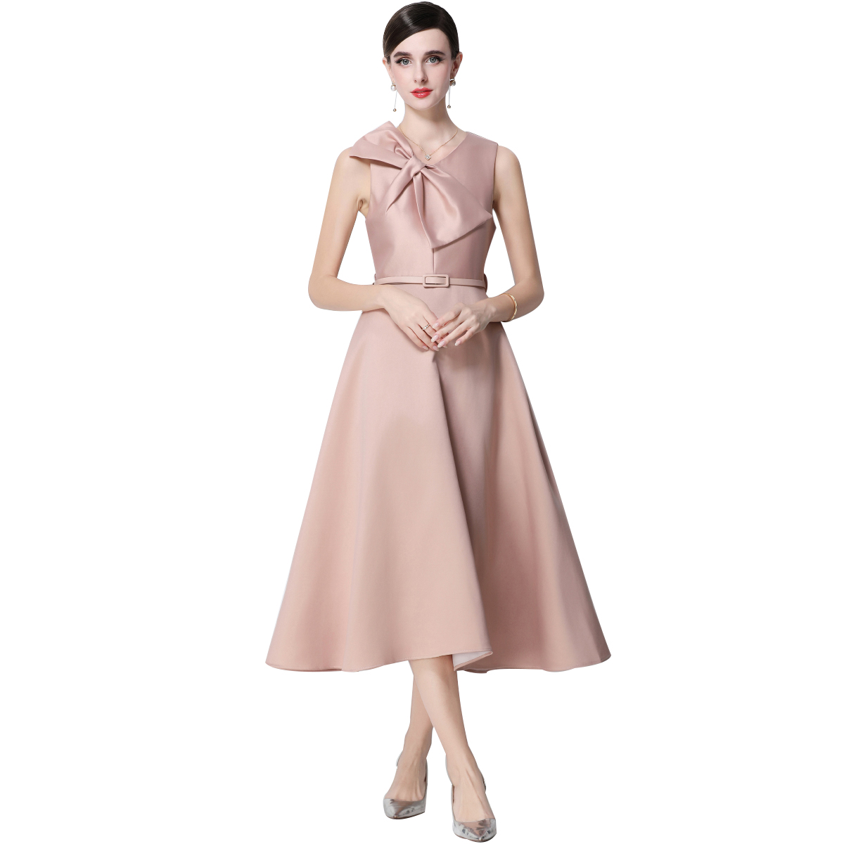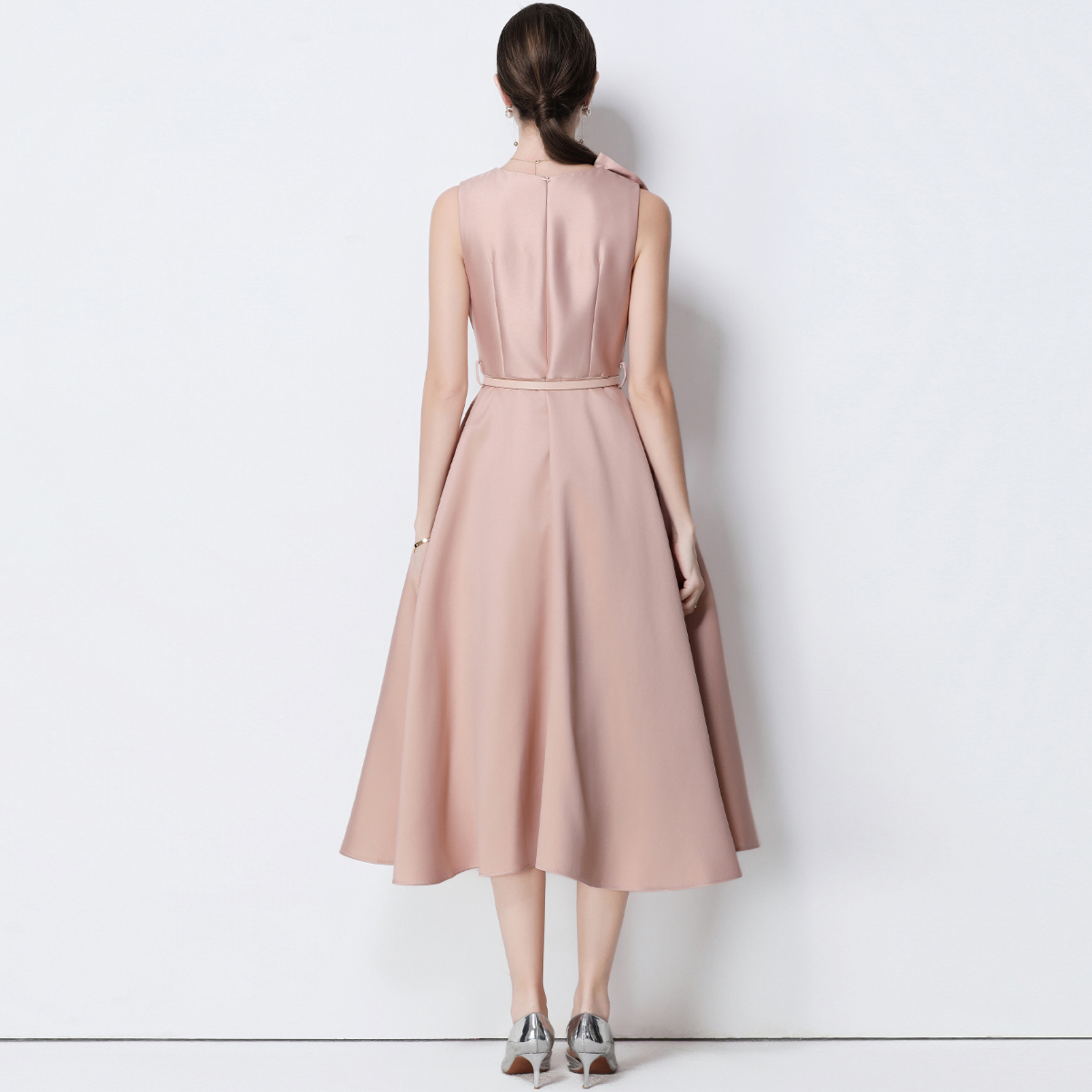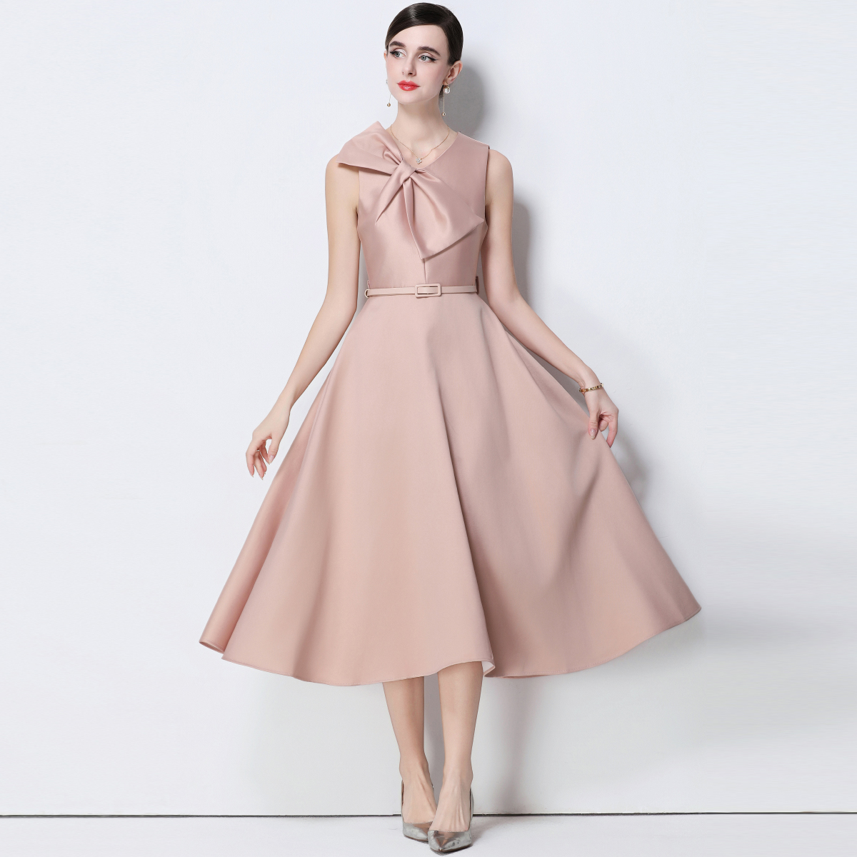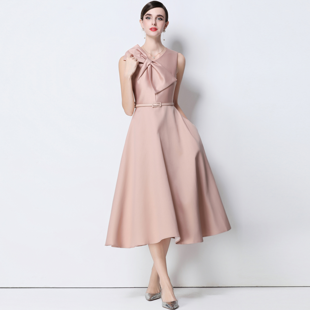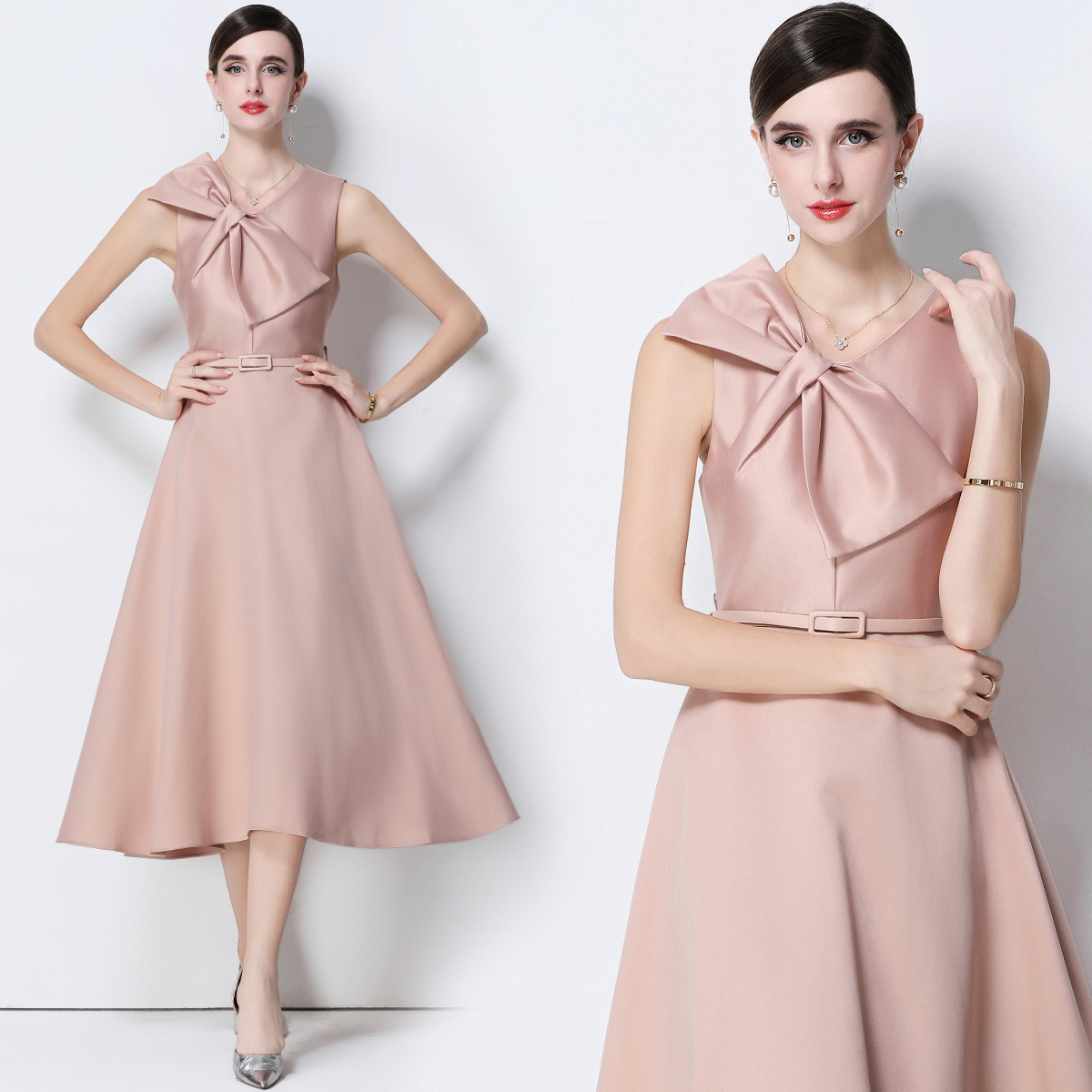 FA51352# 法式复古设计感V领大蝴蝶结收腰显瘦大摆无袖连衣裙送腰带 服裝批發女裝批發服飾貨源