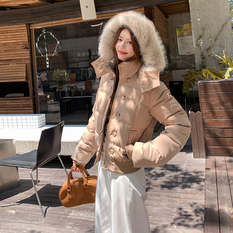 FA51396# 网红尹千金同款可拆卸帽芬兰雪境纯色连帽大毛领棉袄学生外套棉服 服裝批發女裝批發服飾貨源