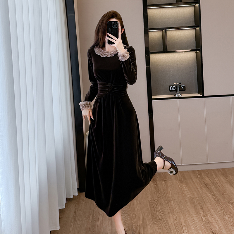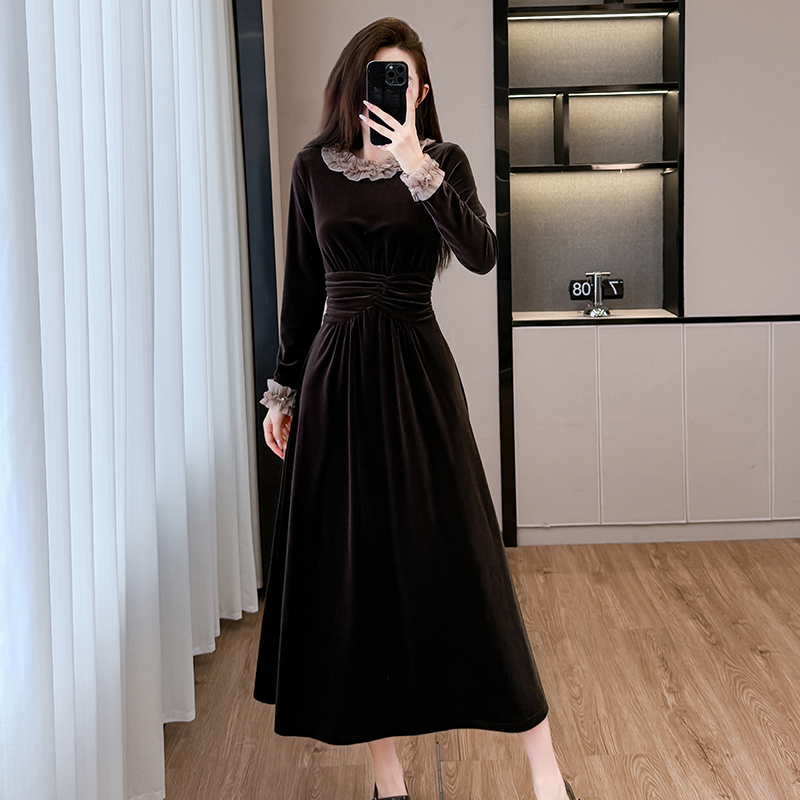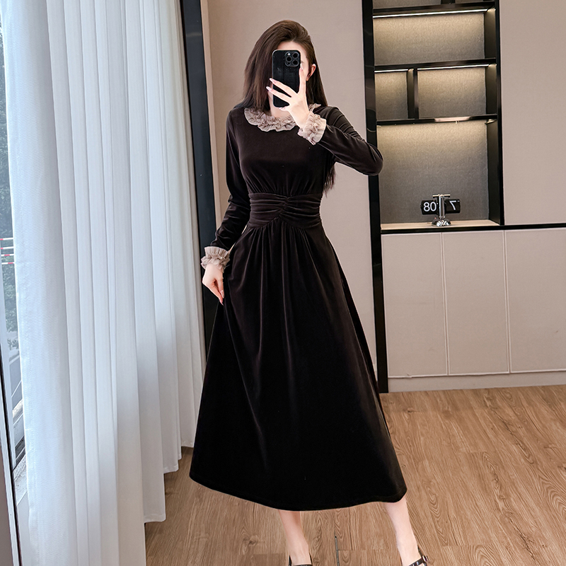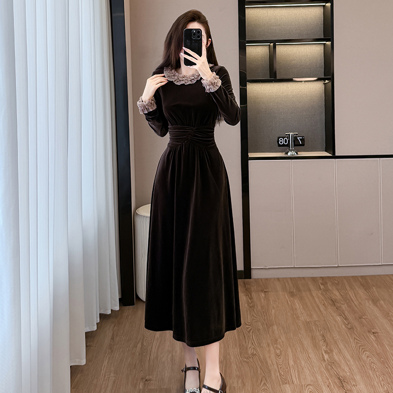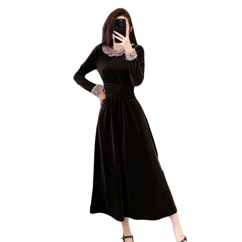 FA51593# 秋冬新款天丝圆领冬日氛围感气质收腰连衣裙