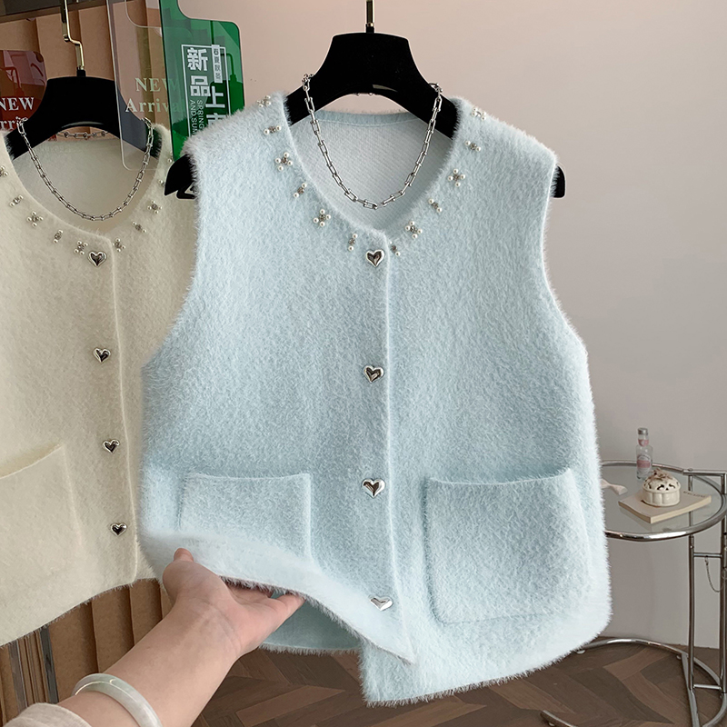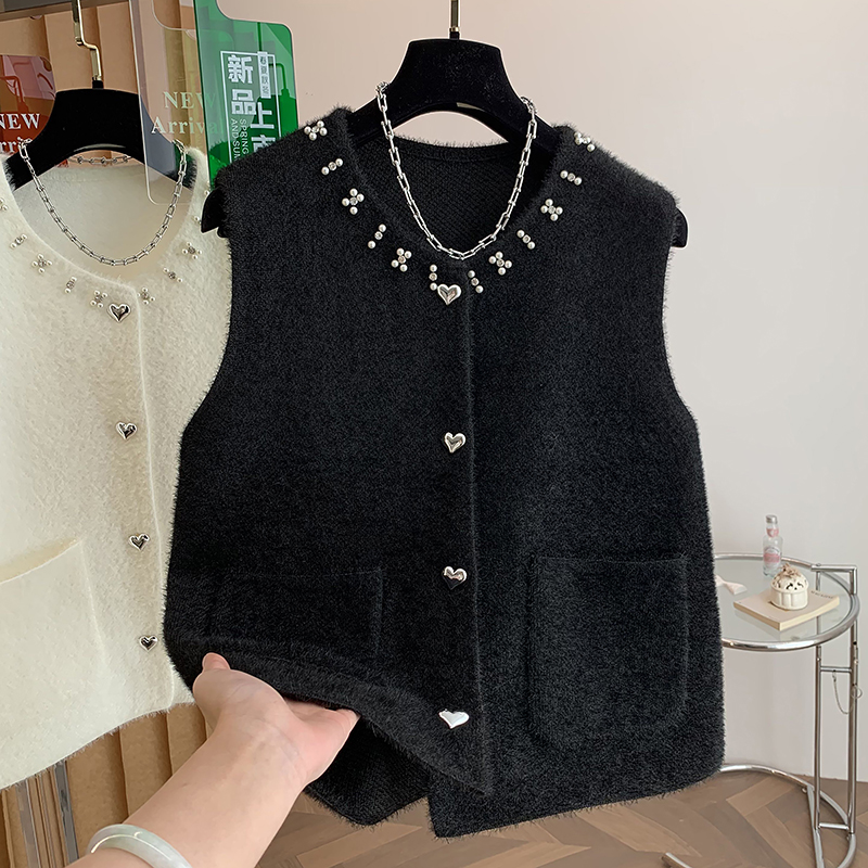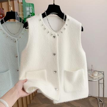 重工钉珠小香风气质针织背心马甲女秋冬高级感叠穿马夹上衣