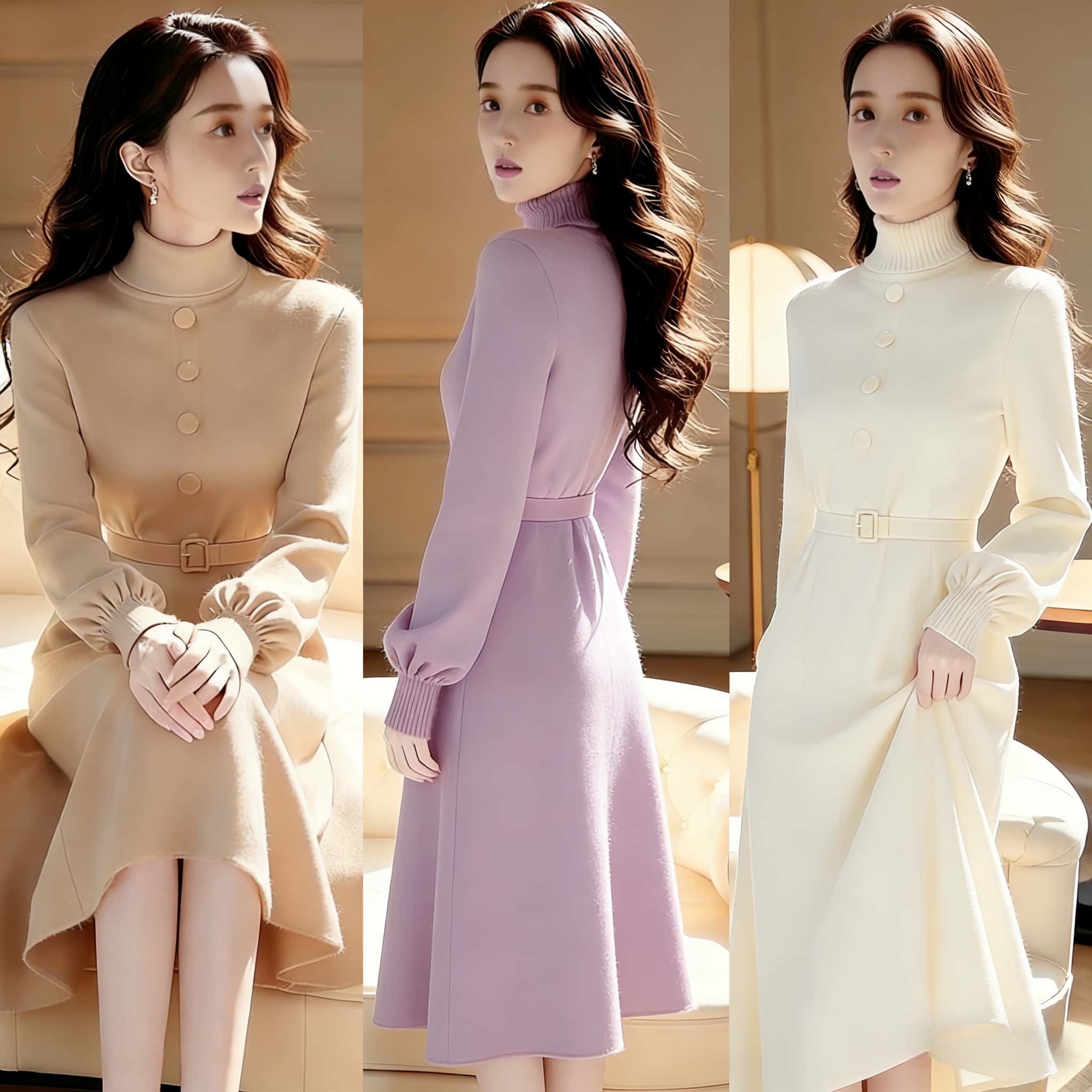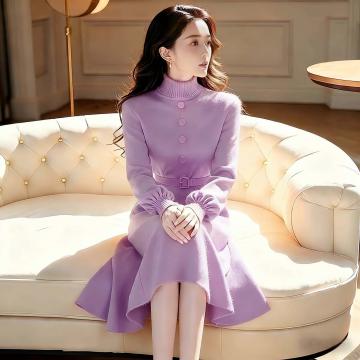 FA52887# 法式高级感小香风收腰紫色毛衣连衣裙外穿冬季打底针织裙子 服裝批發女裝批發服飾貨源