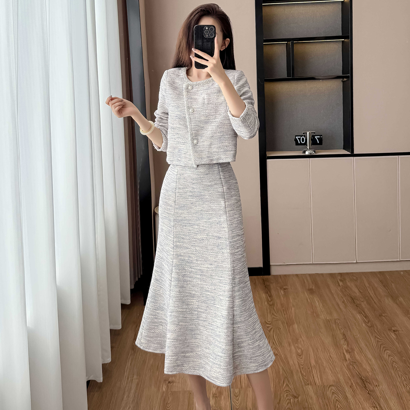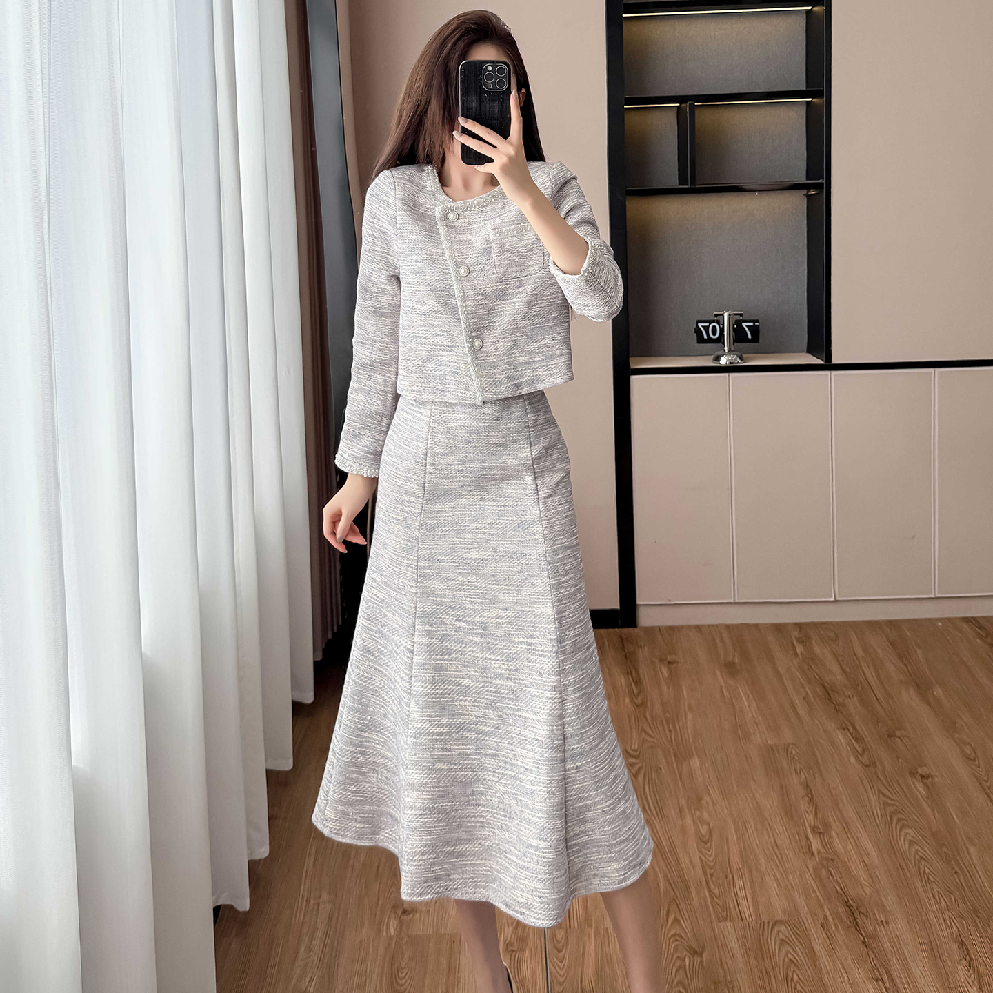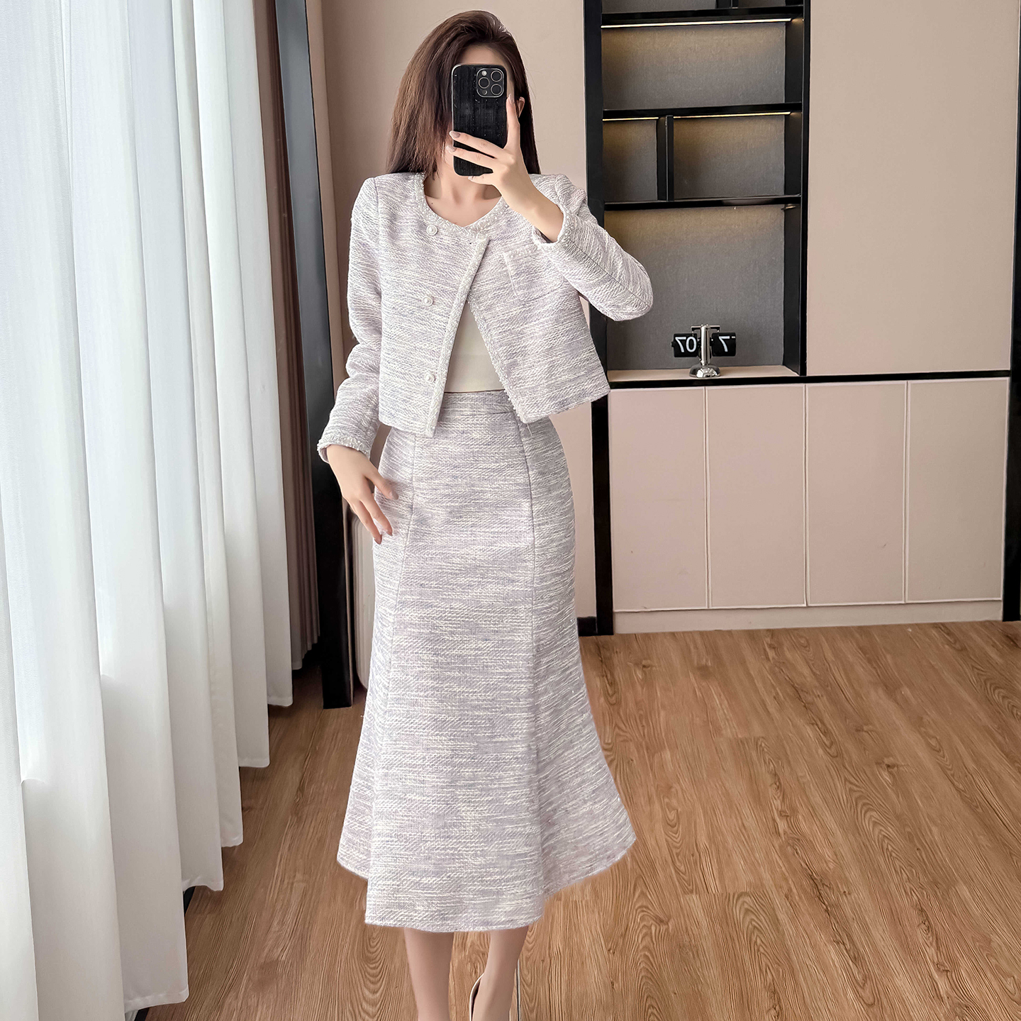 FA52899# 秋季爆款两件套法式气质感小众设计师香芋紫小香风套装 服裝批發女裝批發服飾貨源