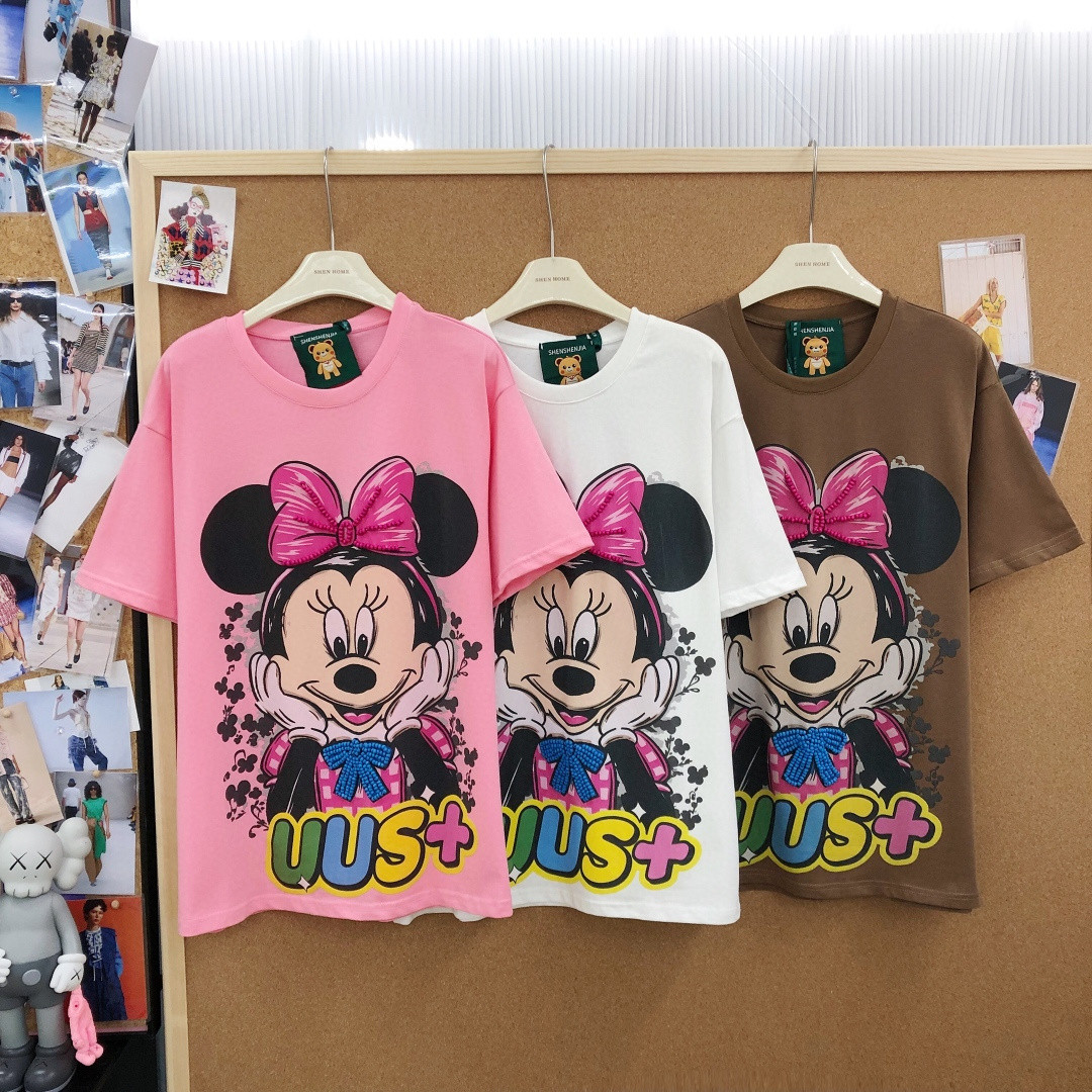 FA53916# 韩版潮流百搭钉珠米妮印花宽松时尚圆领短袖T恤 服裝批發女裝批發服飾貨源