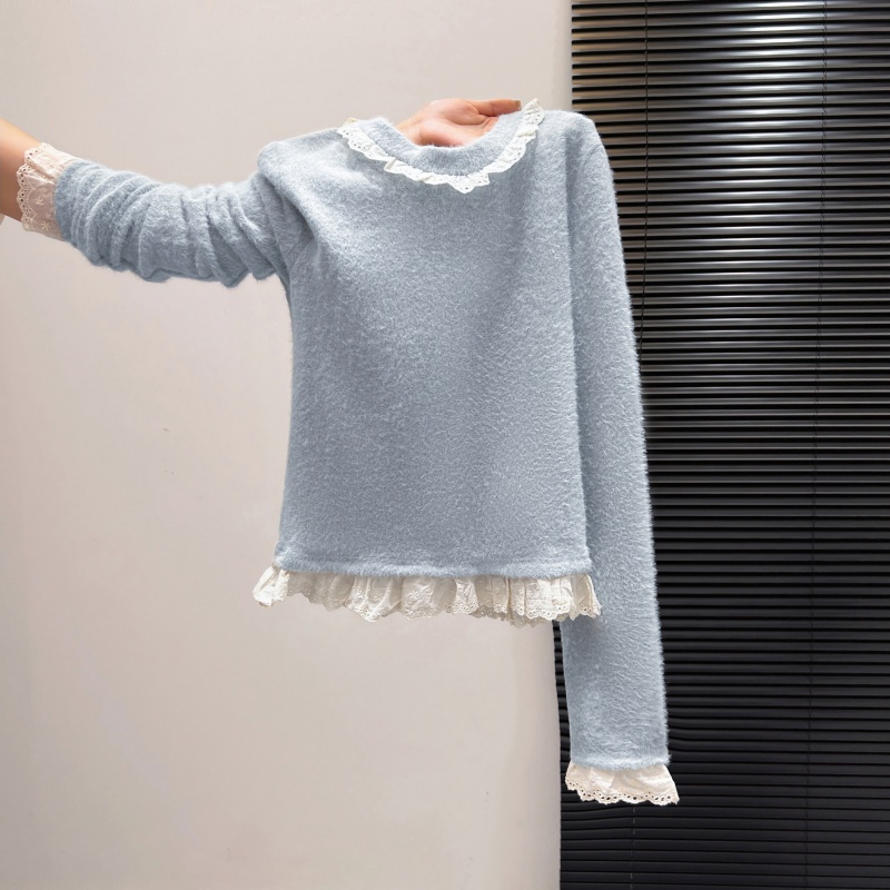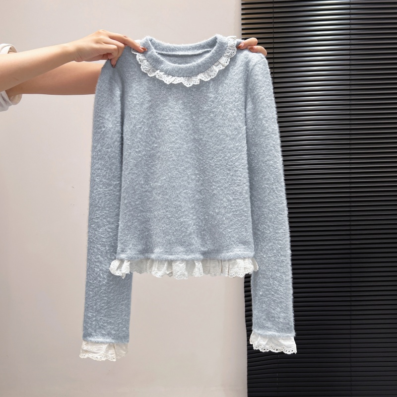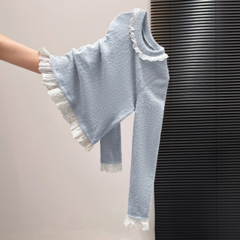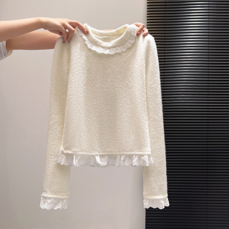FA55166# 秋冬新款韩版修身甜美减龄显瘦休闲百搭花边套头毛衣 服裝批發女裝批發服飾貨源