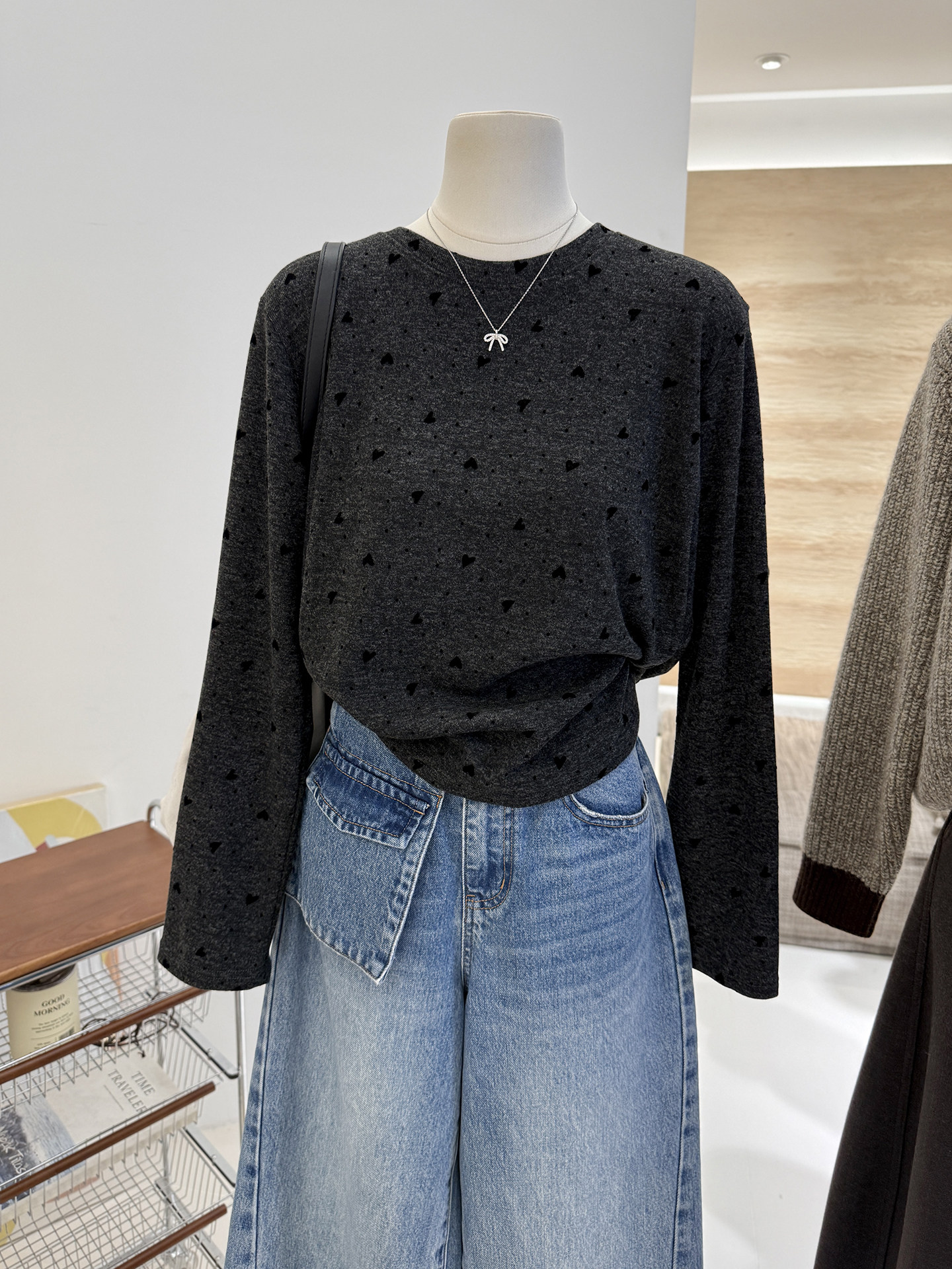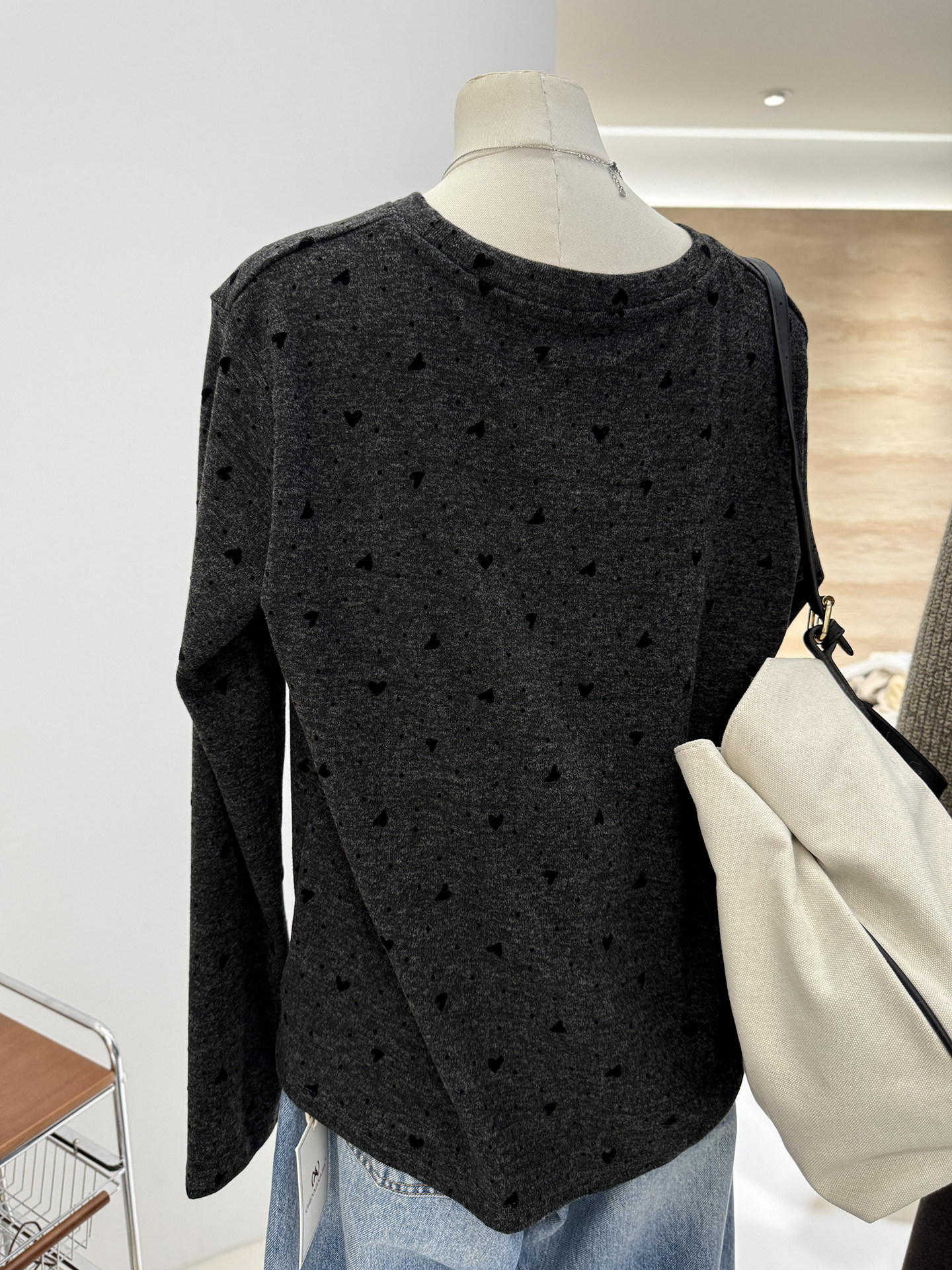 FA55170# 螺纹德绒大码300斤早春韩系百搭爱心加厚磨毛长袖打底衫T恤女上衣 服裝批發女裝批發服飾貨源