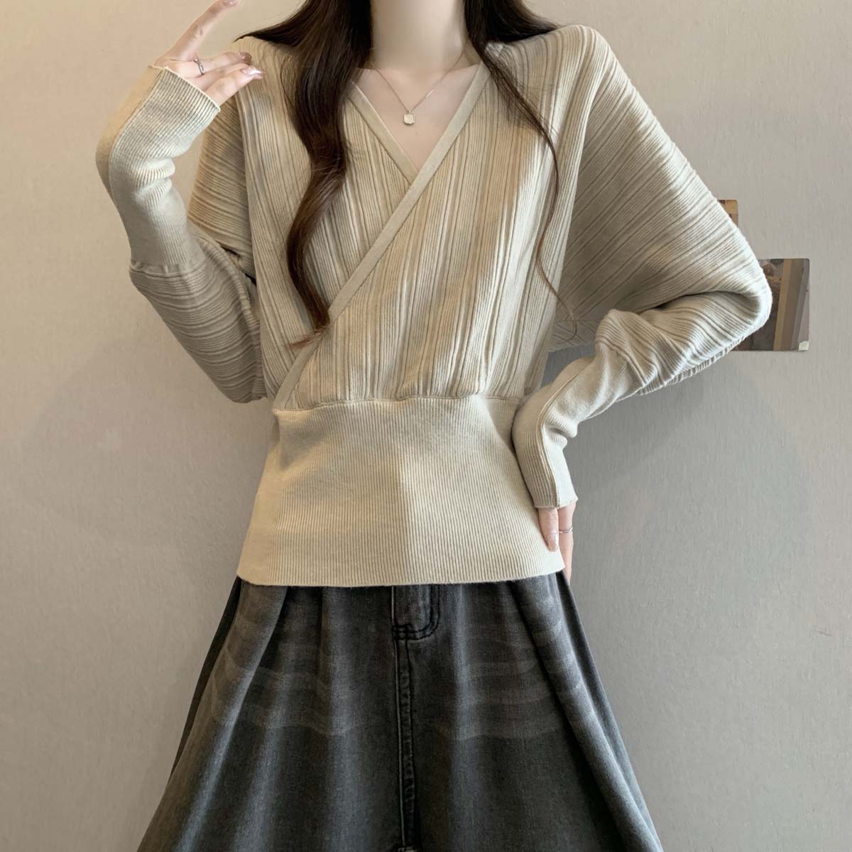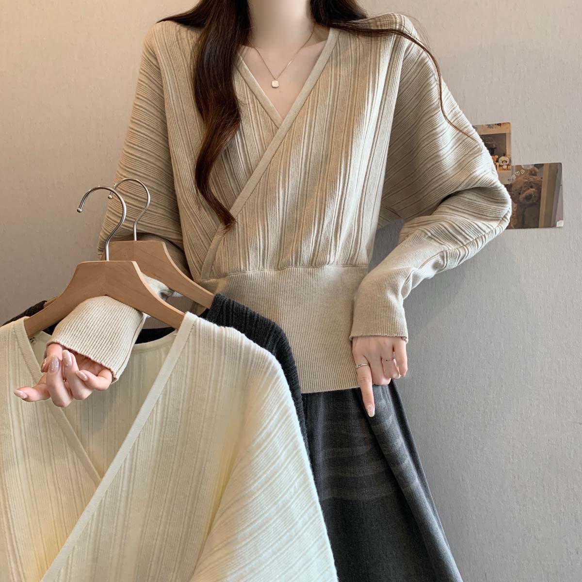 FA55207# 早春新款条纹简约V领打底衫针织毛衣大码休闲显瘦上衣 服裝批發女裝批發服飾貨源