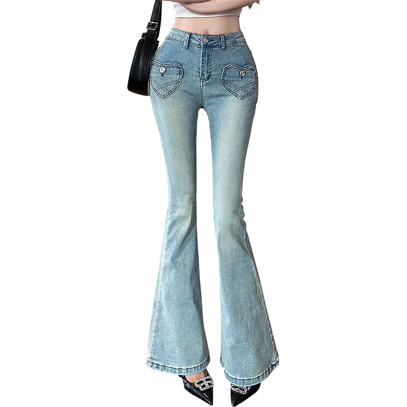 FA56528# 自带丰胯垫韩系纯欲26年早春新款前爱心口袋辣妹喇叭牛仔裤 服裝批發女裝批發服飾貨源