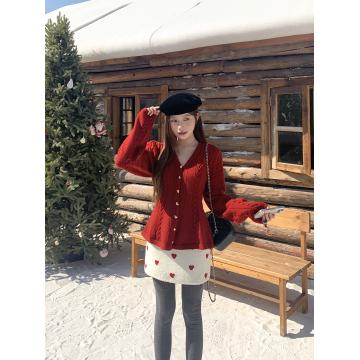 红色爱心扣毛衣