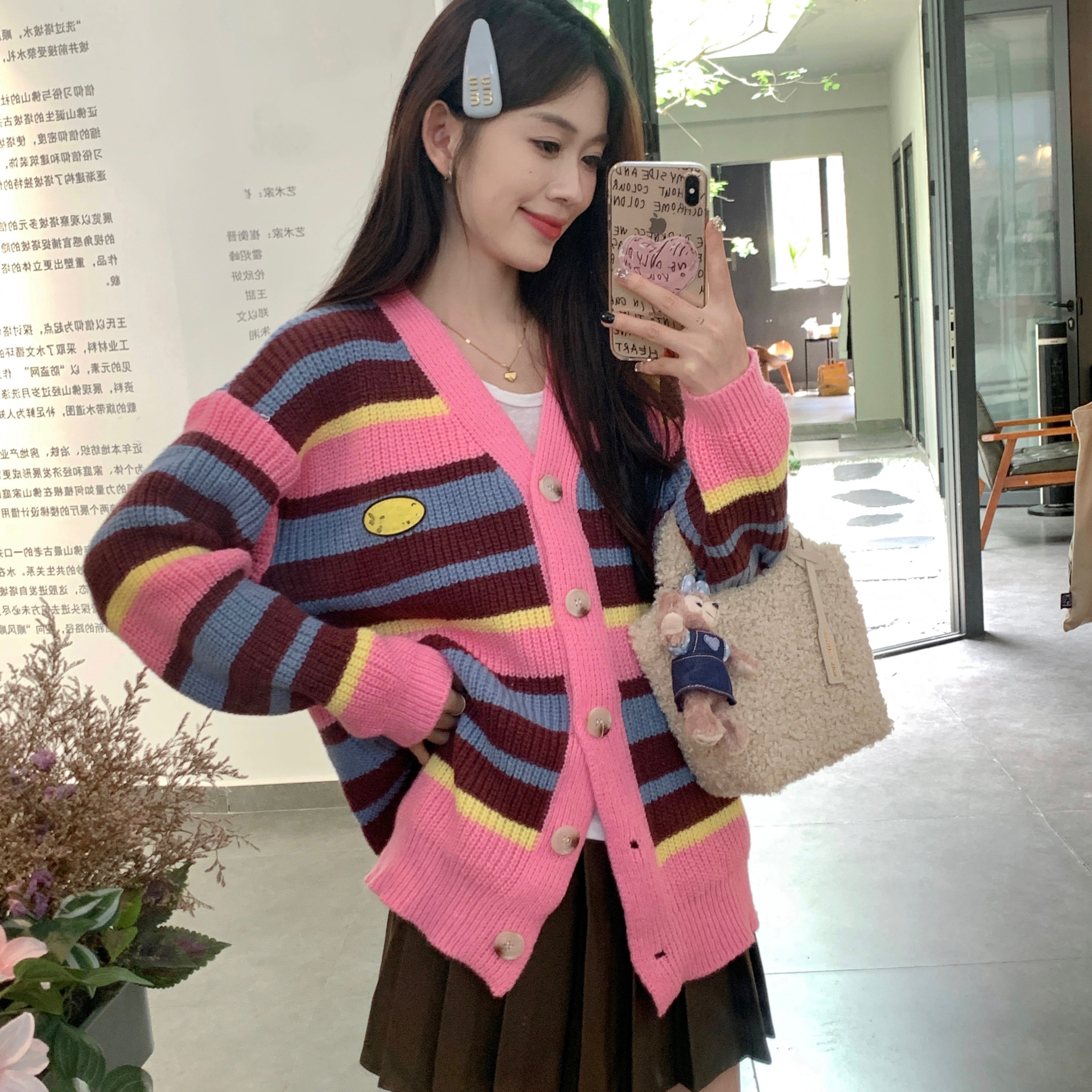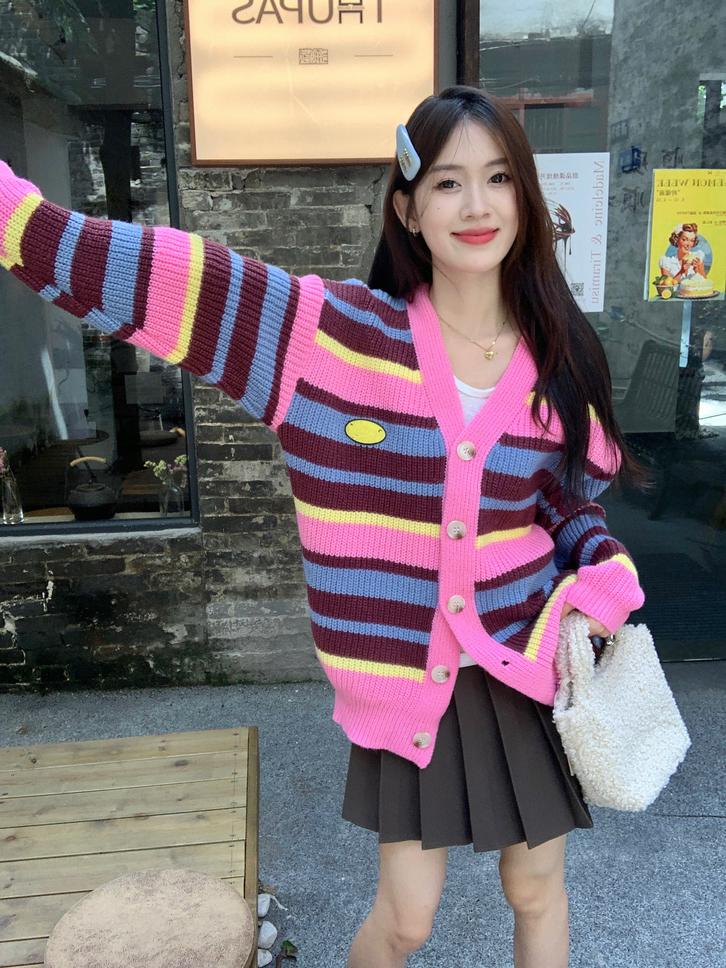 粉色条纹毛衣