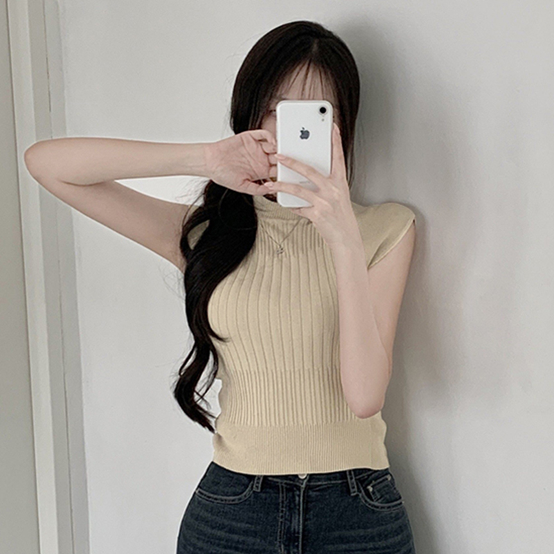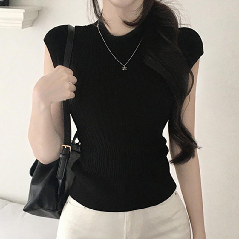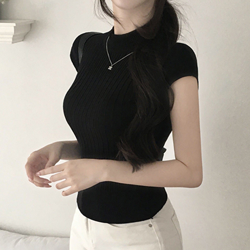FA56602# 韩国东大门时尚简约韩系纯色修身性感半高领百搭短袖针织衫上衣女 服裝批發女裝批發服飾貨源