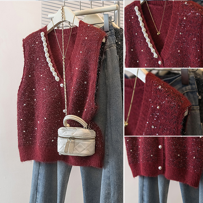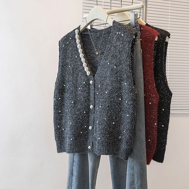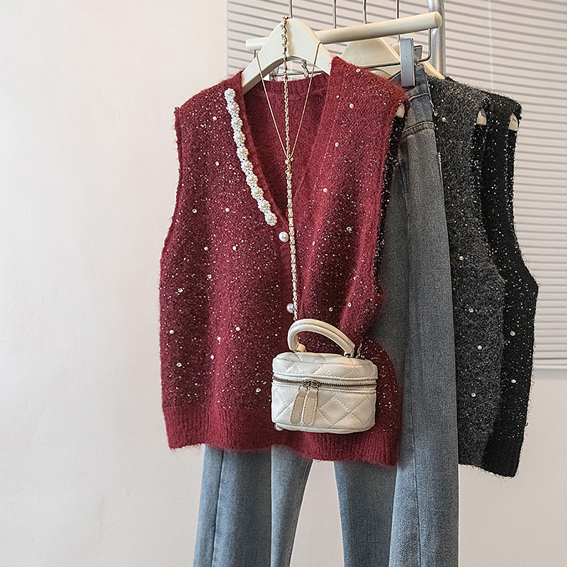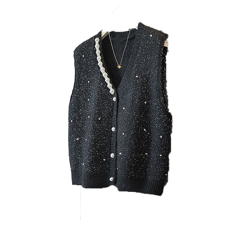 FA56606# 大码女装冬季新款韩版高级感潮流亮片显瘦修身微透马甲上衣 服裝批發女裝批發服飾貨源