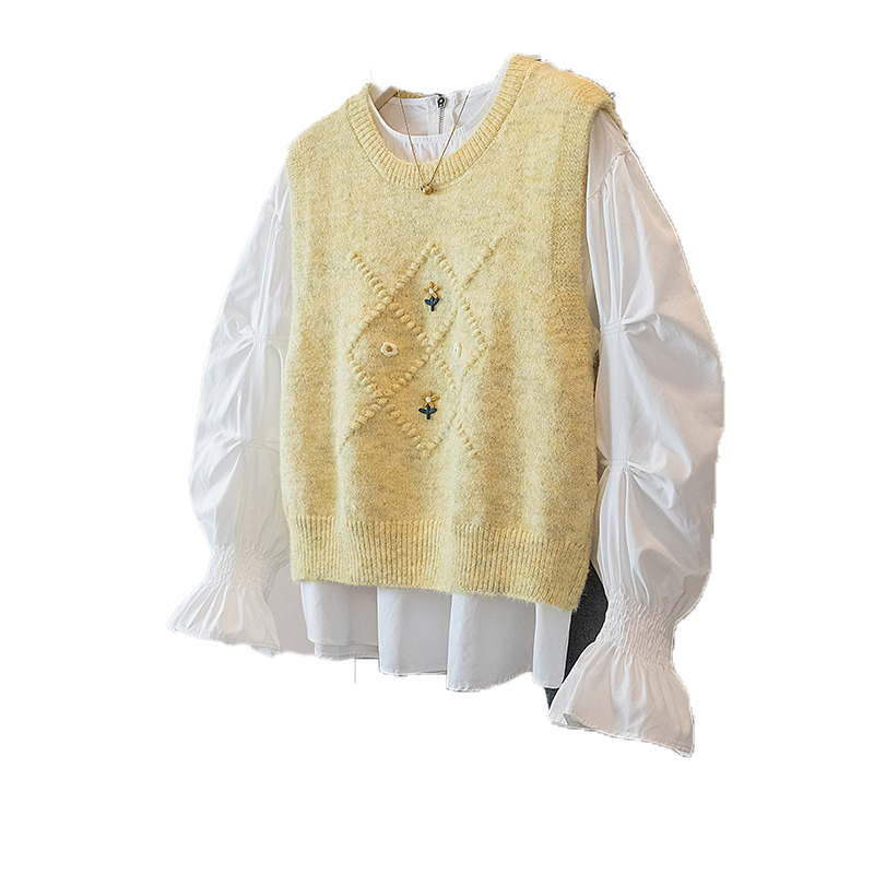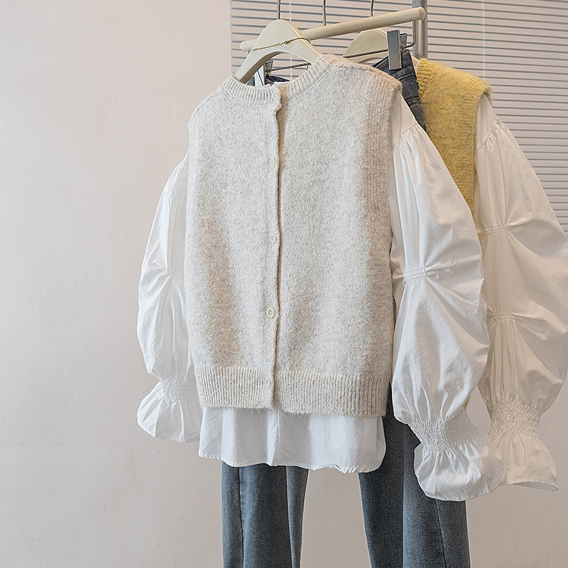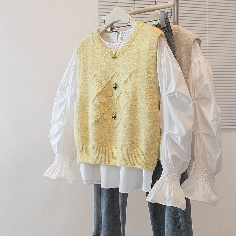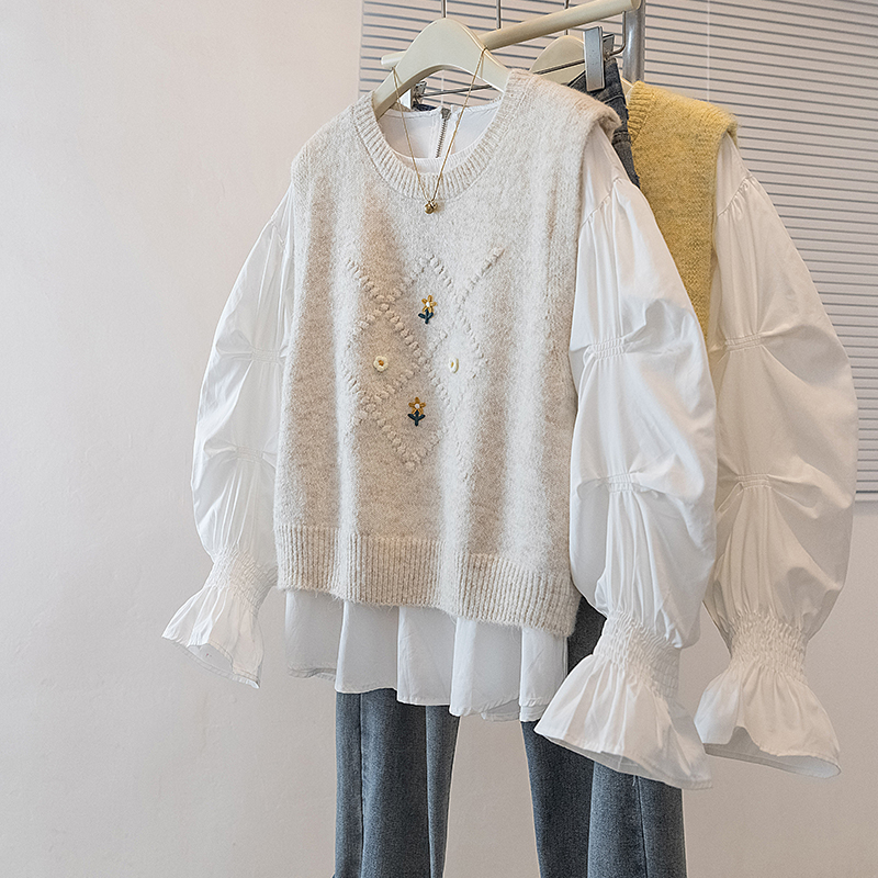 FA56607# 大码女装新款韩版胖MM高级感潮流衬衫设计感甜美显瘦修身马甲 服裝批發女裝批發服飾貨源