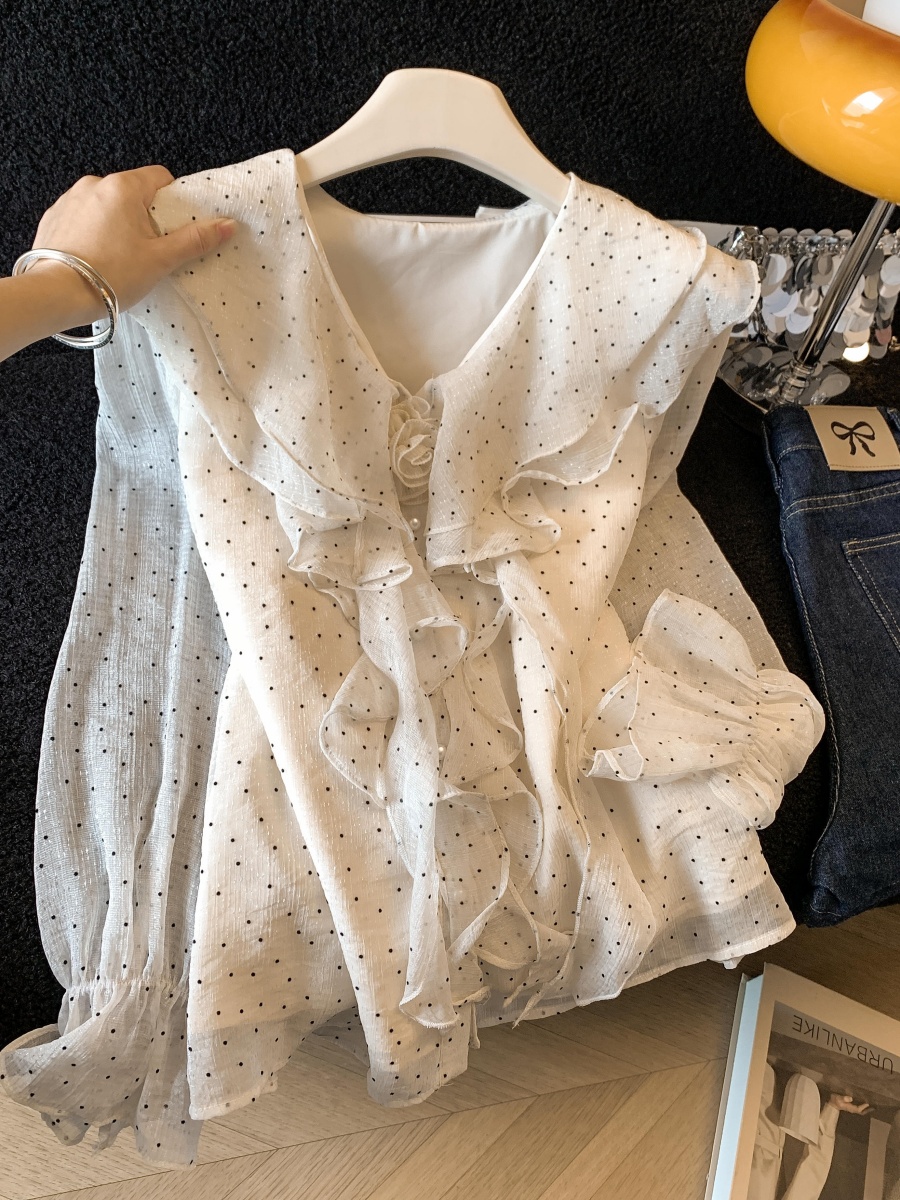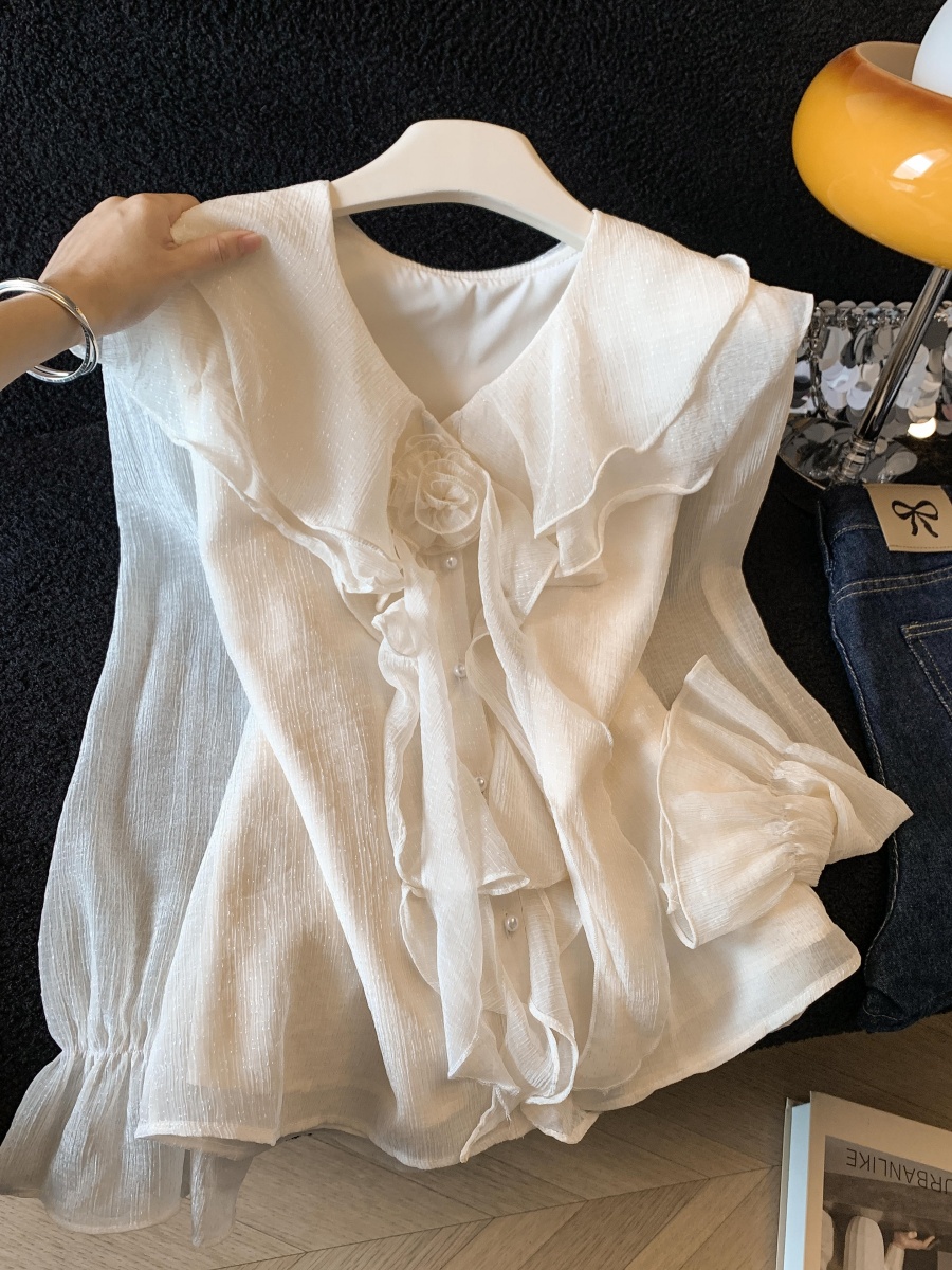 FA56612# 法式高级感衬衫玫瑰V领春季新款荷叶边衬衣显瘦绝美上衣女 服裝批發女裝批發服飾貨源