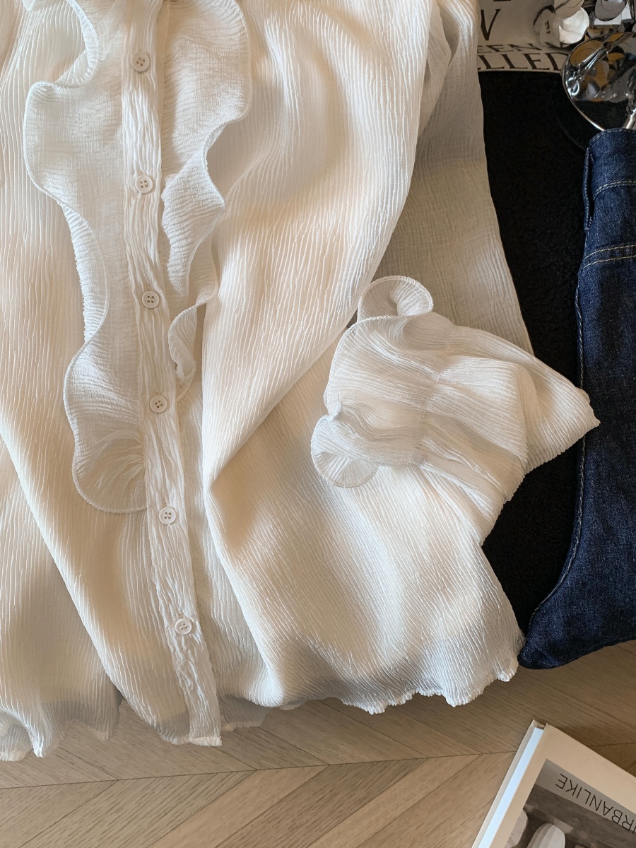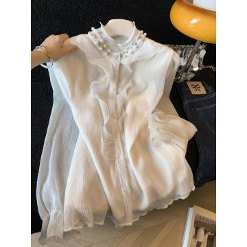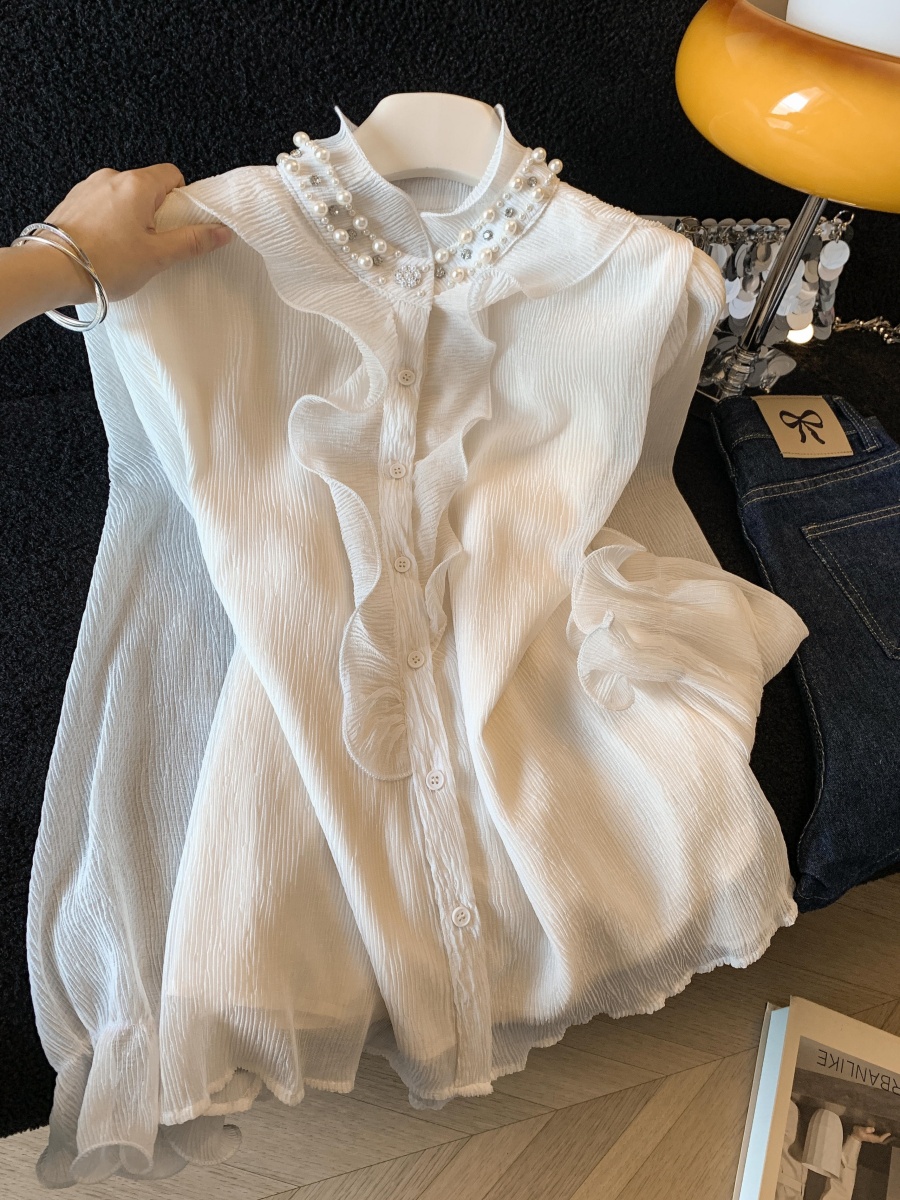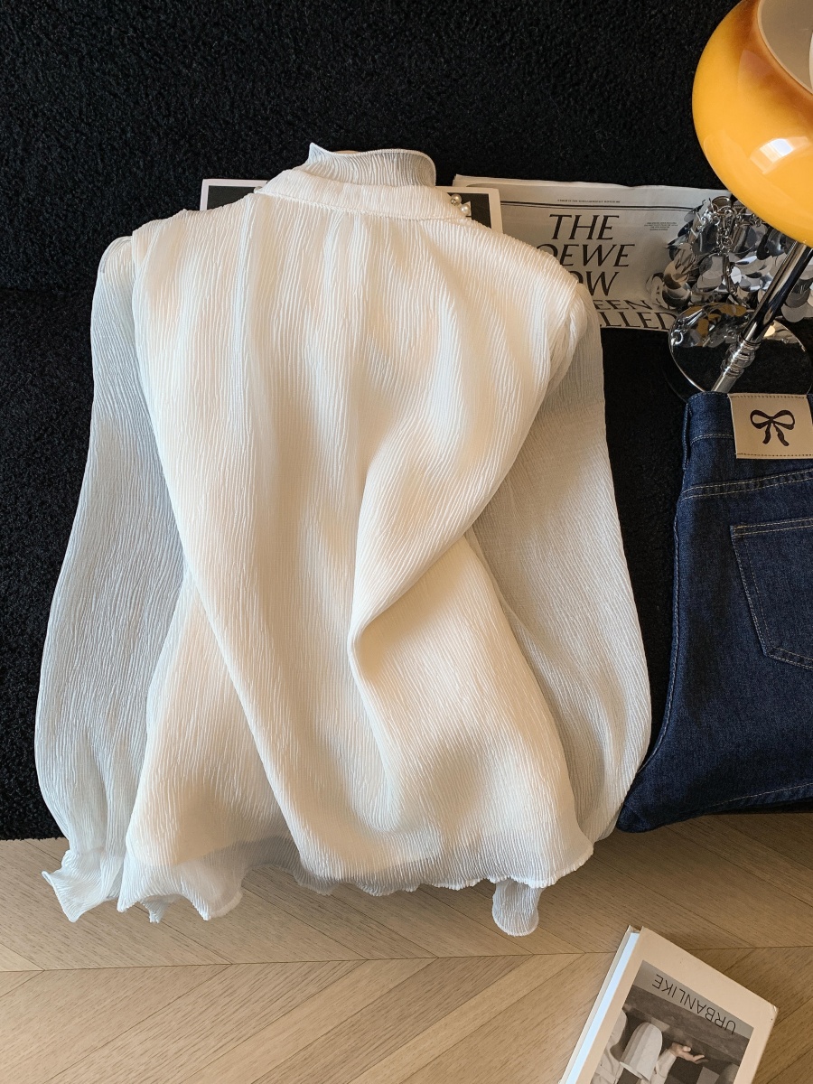 FA56614# 木耳边立领工艺钉珠衬衫女春季新款气质温柔风优雅衬衣上衣 服裝批發女裝批發服飾貨源