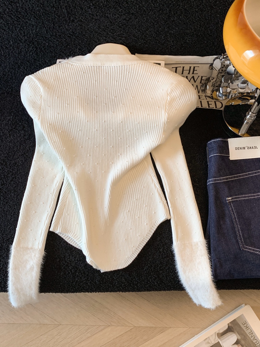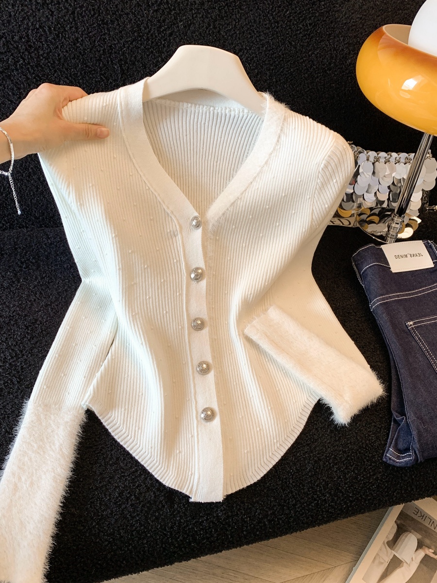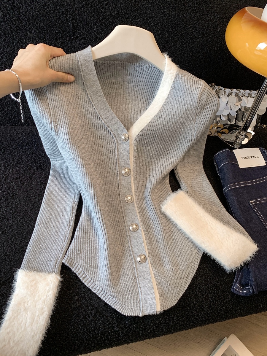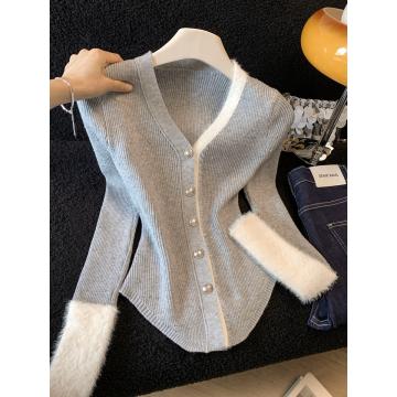 FA56616# 早春季假两件撞色拼接V领针织衫长袖毛衣女上衣开衫 服裝批發女裝批發服飾貨源